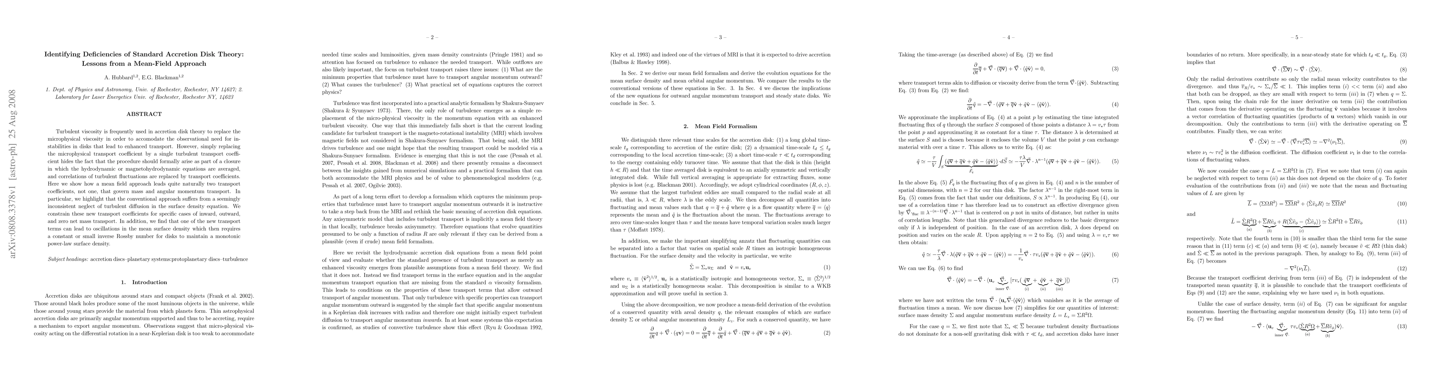 Turbulent viscosity is frequently used in accretion disk theory to replace the microphysical viscosity in order to accomodate the observational need for in- stabilities in disks that lead to enhanced transport. However, simply replacing the microphysical transport coefficient by a single turbulent transport coeffi- cient hides the fact that the procedure should formally arise as part of a closure in which the hydrodynamic or magnetohydrodynamic equations are averaged, and correlations of turbulent fluctuations are replaced by transport coefficients. Here we show how a mean field approach leads quite naturally two transport coefficients, not one, that govern mass and angular momentum transport. In particular, we highlight that the conventional approach suffers from a seemingly inconsistent neglect of turbulent diffusion in the surface density equation. We constrain these new transport coefficients for specific cases of inward, outward, and zero net mass transport. In addition, we find that one of the new transport terms can lead to oscillations in the mean surface density which then requires a constant or small inverse Rossby number for disks to maintain a monotonic power-law surface density.