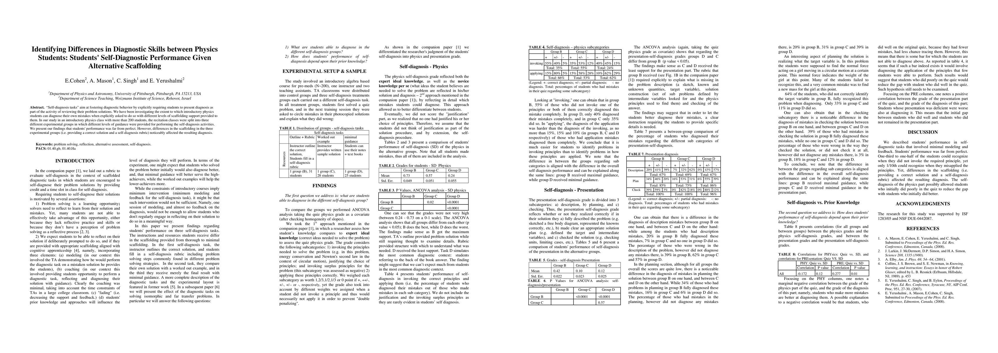 "Self-diagnosis tasks" aim at fostering diagnostic behavior by explicitly requiring students to present diagnosis as part of the activity of reviewing their problem solutions. We have been investigating the extent to which introductory physics students can diagnose their own mistakes when explicitly asked to do so with different levels of scaffolding support provided to them. In our study in an introductory physics class with more than 200 students, the recitation classes were split into three different experimental groups in which different levels of guidance were provided for performing the self-diagnosis activities. We present our findings that students' performance was far from perfect. However, differences in the scaffolding in the three experimental groups (i.e. providing a correct solution and a self-diagnosis rubric) noticeably affected the resulting diagnosis.