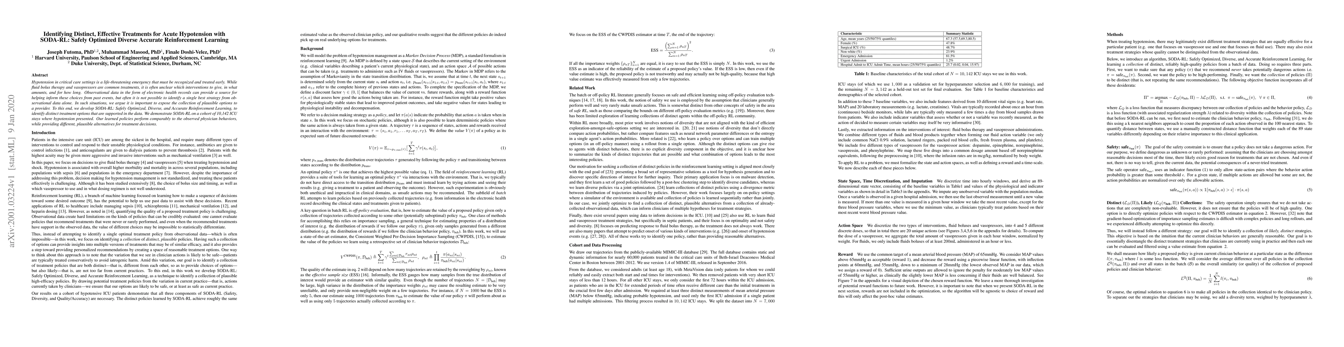 Researchers developed SODA-RL to identify effective treatments for acute hypotension in ICU patients, finding alternatives that perform comparably to observed physician behaviors.