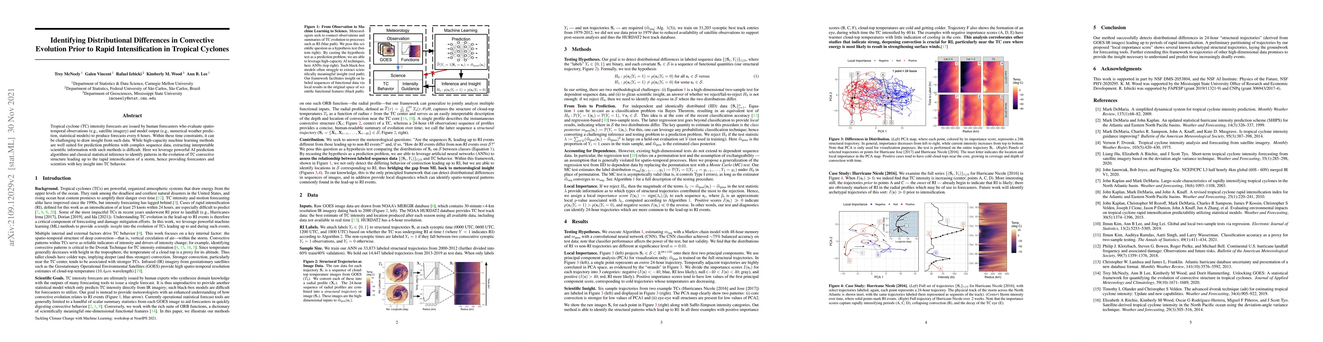This paper uses advanced AI algorithms combined with statistical inference to identify distributional differences in the convective evolution of tropical cyclones prior to rapid intensification, offering valuable insights for forecasters and scientists. The study aims to bridge the gap between predictive modeling and interpretable scientific understanding of storm behavior.