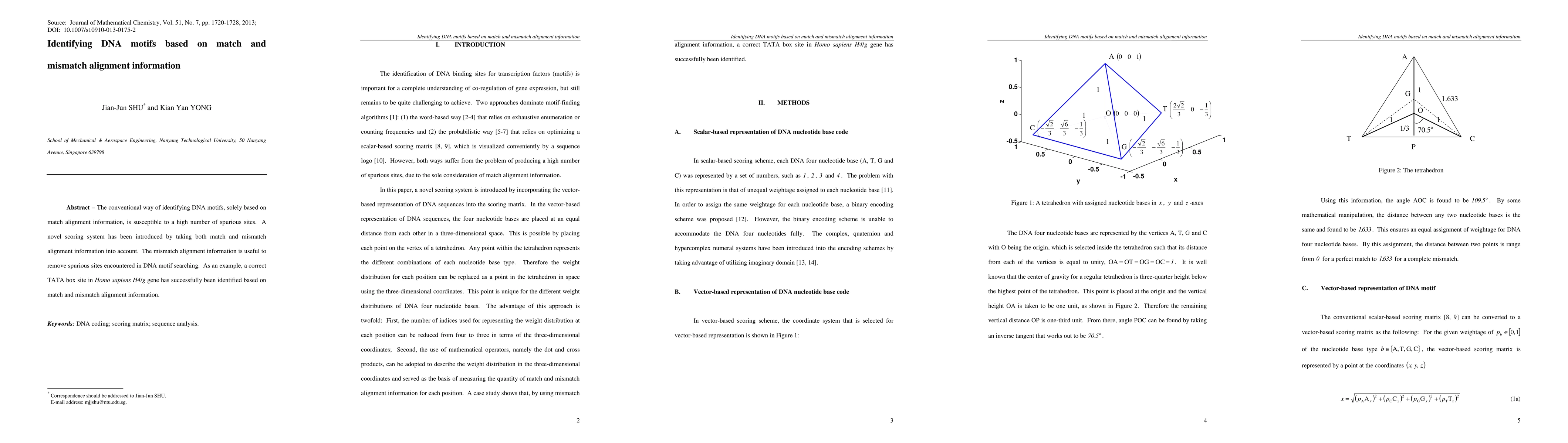 This paper introduces a novel scoring system for identifying DNA motifs that considers both match and mismatch alignment information, effectively reducing spurious sites compared to traditional methods. An example of its success is the identification of a correct TATA box site in the Homo sapiens H4/g gene.