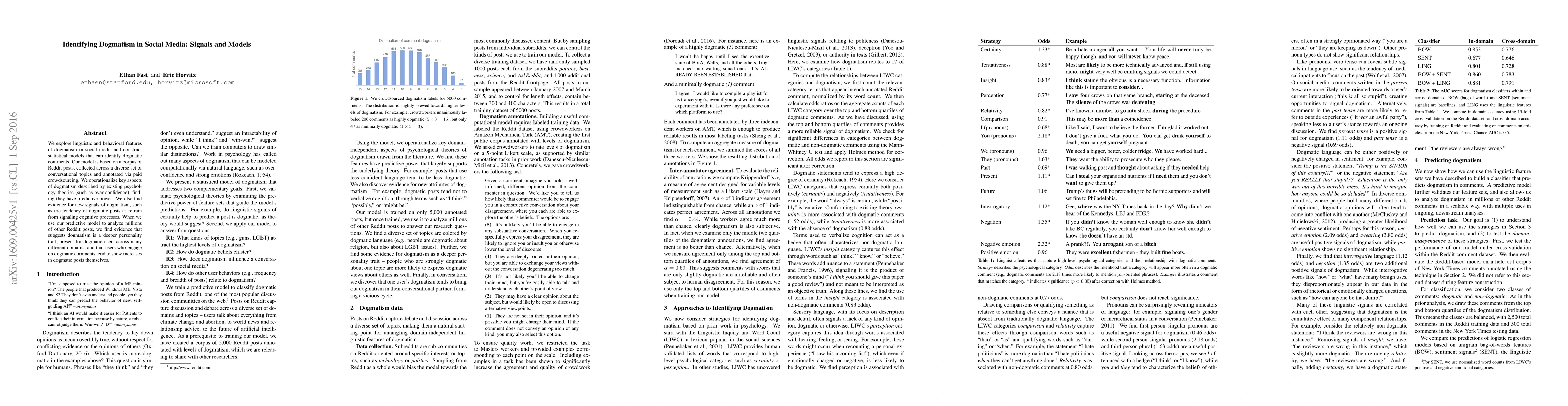 This paper identifies linguistic and behavioral markers of dogmatism in social media using Reddit posts, developing a statistical model to detect dogmatic comments. The model, validated on a diverse dataset, reveals that dogmatic users exhibit consistent traits across various topics and are likely to increase their dogmatic posts after engagement.