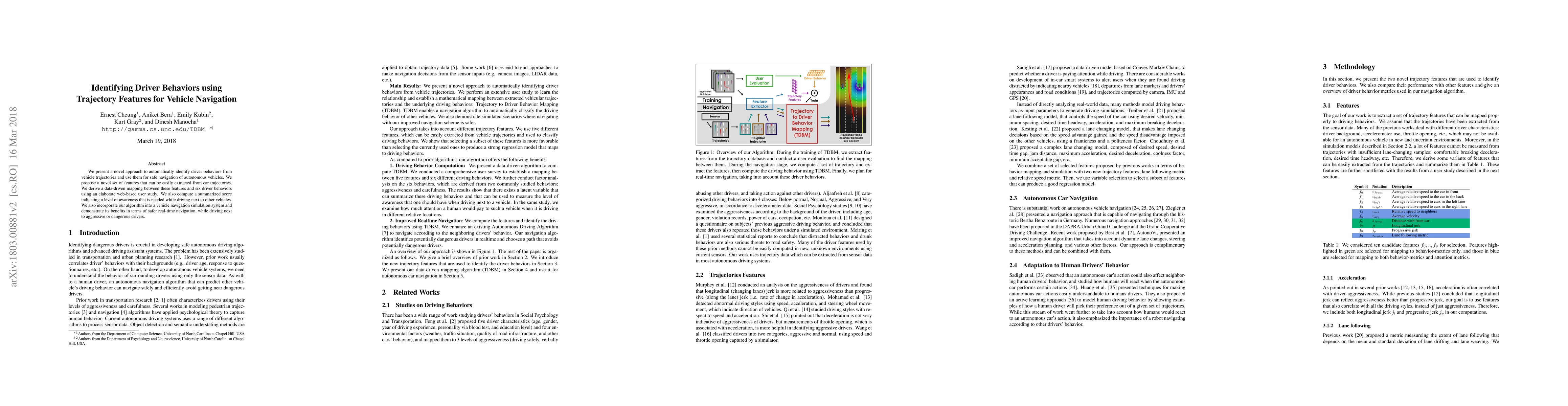 Researchers develop a method to identify driver behaviors from vehicle trajectories for safer autonomous navigation, using a novel set of features derived from data-driven analysis.