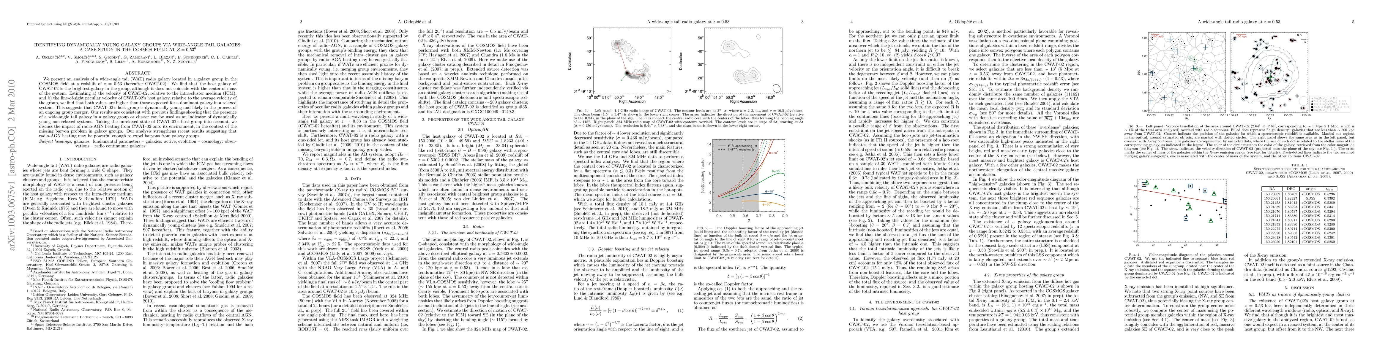 This paper identifies a dynamically young galaxy group via a wide-angle tail radio galaxy in the COSMOS field at z=0.53, finding it likely in the midst of a merger. The analysis suggests that radio-AGN heating from the radio galaxy may contribute to the expulsion of baryons, supporting the missing baryon problem.
