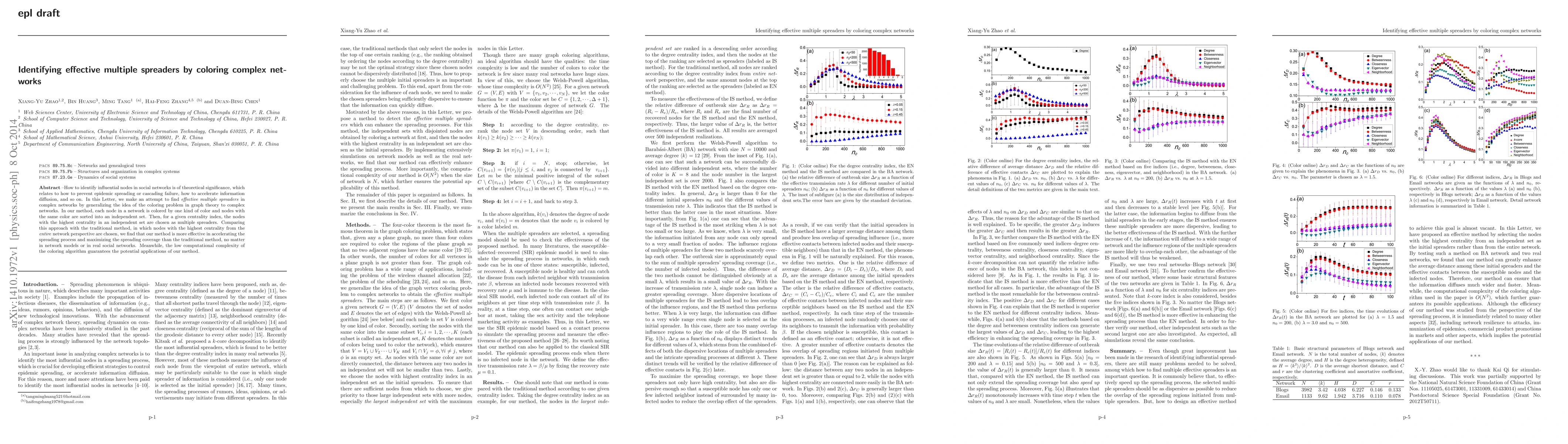 This paper proposes a novel method to identify effective multiple spreaders in complex networks by generalizing the coloring problem. The method selects nodes with the highest centrality within independent sets formed by nodes of the same color, proving more effective in spreading processes than traditional methods.