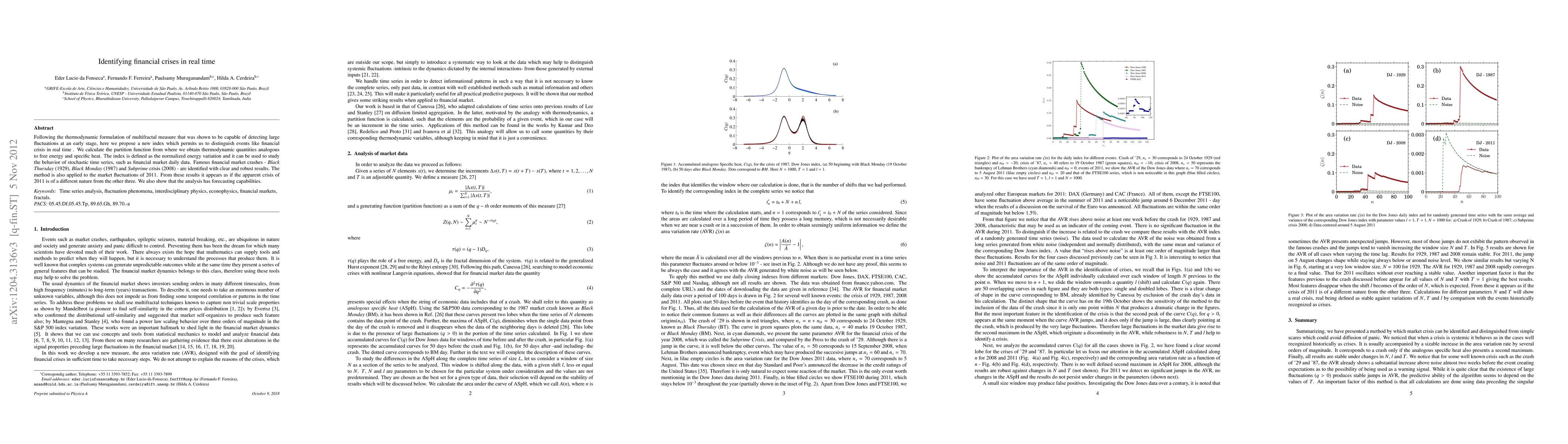Following the thermodynamic formulation of multifractal measure that was shown to be capable of detecting large fluctuations at an early stage, here we propose a new index which permits us to distinguish events like financial crisis in real time . We calculate the partition function from where we obtain thermodynamic quantities analogous to free energy and specific heat. The index is defined as the normalized energy variation and it can be used to study the behavior of stochastic time series, such as financial market daily data. Famous financial market crashes - Black Thursday (1929), Black Monday (1987) and Subprime crisis (2008) - are identified with clear and robust results. The method is also applied to the market fluctuations of 2011. From these results it appears as if the apparent crisis of 2011 is of a different nature from the other three. We also show that the analysis has forecasting capabilities.