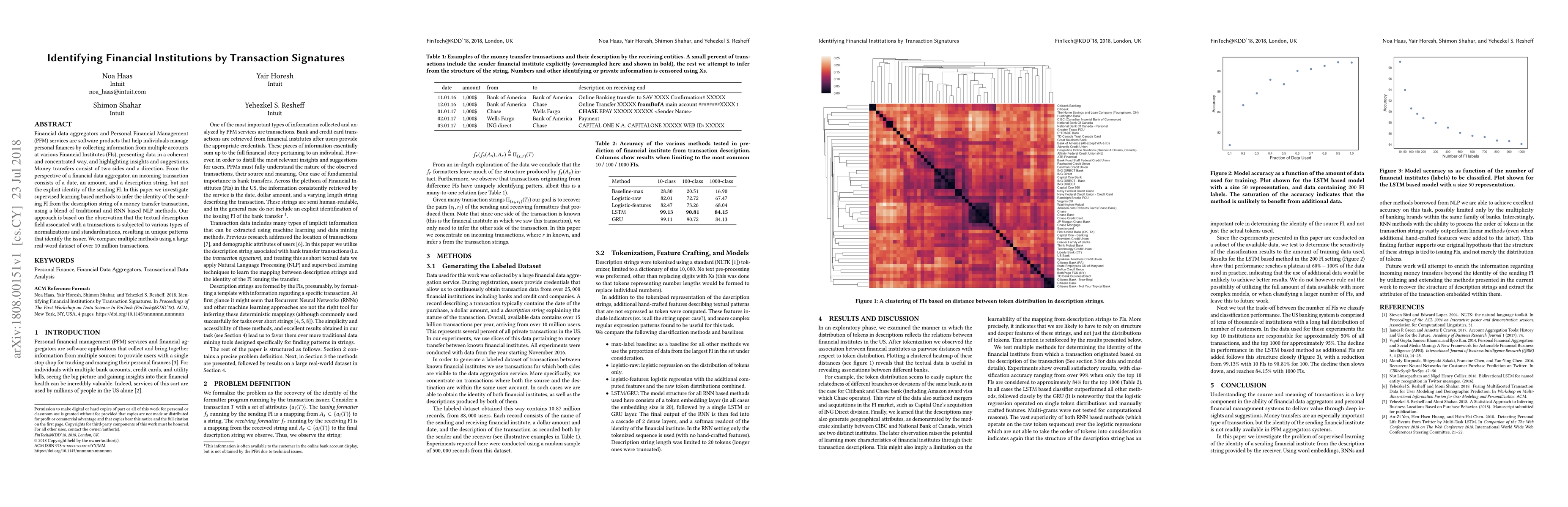 Financial data aggregators and Personal Financial Management (PFM) services are software products that help individuals manage personal finances by collecting information from multiple accounts at various Financial Institutes (FIs), presenting data in a coherent and concentrated way, and highlighting insights and suggestions. Money transfers consist of two sides and a direction. From the perspective of a financial data aggregator, an incoming transaction consists of a date, an amount, and a description string, but not the explicit identity of the sending FI. In this paper we investigate supervised learning based methods to infer the identity of the sending FI from the description string of a money transfer transaction, using a blend of traditional and RNN based NLP methods. Our approach is based on the observation that the textual description field associated with a transactions is subjected to various types of normalizations and standardizations, resulting in unique patterns that identify the issuer. We compare multiple methods using a large real-word dataset of over $10$ million transactions.