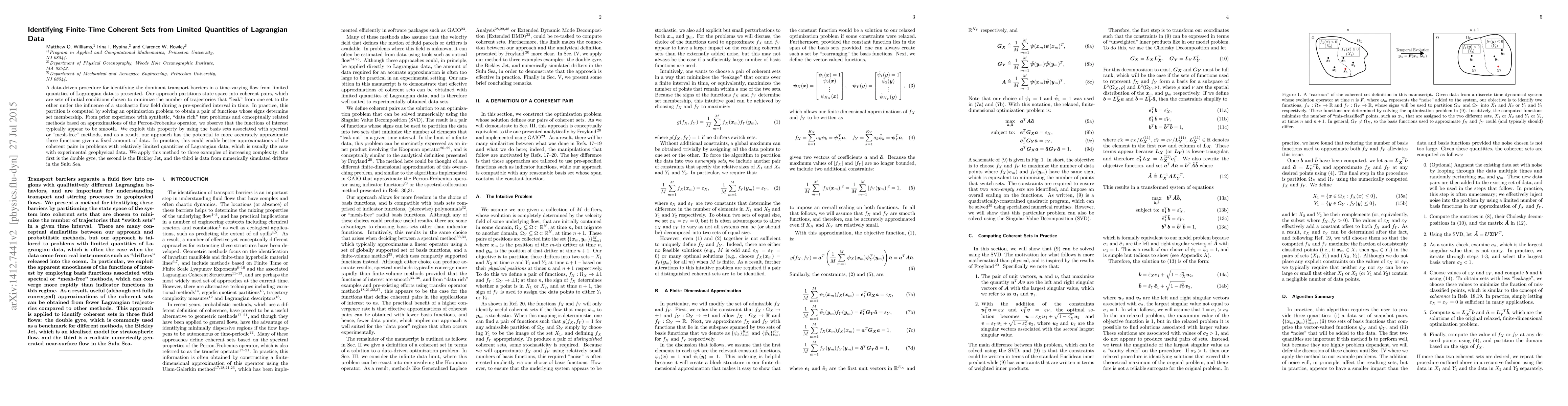 A data-driven procedure for identifying the dominant transport barriers in a time-varying flow from limited quantities of Lagrangian data is presented. Our approach partitions state space into pairs of coherent sets, which are sets of initial conditions chosen to minimize the number of trajectories that "leak" from one set to the other under the influence of a stochastic flow field during a pre-specified interval in time. In practice, this partition is computed by posing an optimization problem, which once solved, yields a pair of functions whose signs determine set membership. From prior experience with synthetic, "data rich" test problems and conceptually related methods based on approximations of the Perron-Frobenius operator, we observe that the functions of interest typically appear to be smooth. As a result, given a fixed amount of data our approach, which can use sets of globally supported basis functions, has the potential to more accurately approximate the desired functions than other functions tailored to use compactly supported indicator functions. This difference enables our approach to produce effective approximations of pairs of coherent sets in problems with relatively limited quantities of Lagrangian data, which is usually the case with real geophysical data. We apply this method to three examples of increasing complexity: the first is the double gyre, the second is the Bickley Jet, and the third is data from numerically simulated drifters in the Sulu Sea.