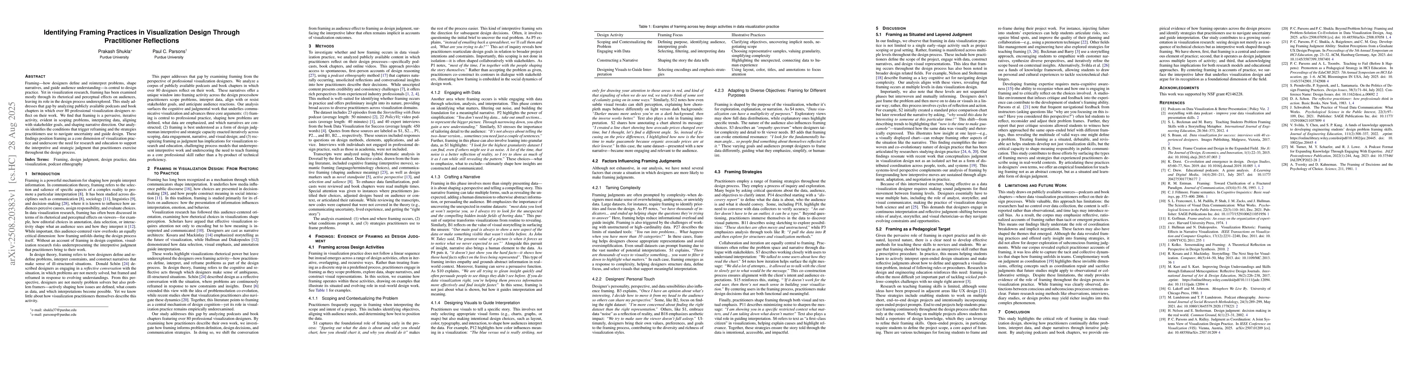 Framing -- how designers define and reinterpret problems, shape narratives, and guide audience understanding -- is central to design practice. Yet in visualization research, framing has been examined mostly through its rhetorical and perceptual effects on audiences, leaving its role in the design process underexplored. This study addresses that gap by analyzing publicly available podcasts and book chapters in which over 80 professional visualization designers reflect on their work. We find that framing is a pervasive, iterative activity, evident in scoping problems, interpreting data, aligning with stakeholder goals, and shaping narrative direction. Our analysis identifies the conditions that trigger reframing and the strategies practitioners use to navigate uncertainty and guide design. These findings position framing as a core dimension of visualization practice and underscore the need for research and education to support the interpretive and strategic judgment that practitioners exercise throughout the design process.