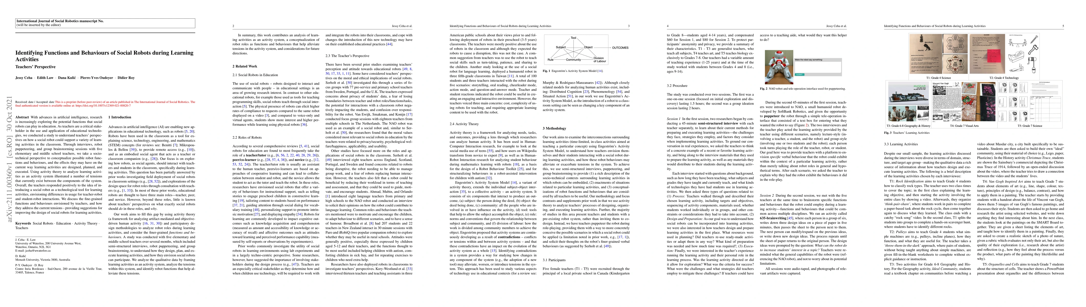With advances in artificial intelligence, research is increasingly exploring the potential functions that social robots can play in education. As teachers are a critical stakeholder in the use and application of educational technologies, we conducted a study to understand teachers' perspectives on how a social robot could support a variety of learning activities in the classroom. Through interviews, robot puppeteering, and group brainstorming sessions with five elementary and middle school teachers from a local school in Canada, we take a socio-technical perspective to conceptualize possible robot functions and behaviours, and the effects they may have on the current way learning activities are designed, planned, and executed. Overall, the teachers responded positively to the idea of introducing a social robot as a technological tool for learning activities, envisioning differences in usage for teacher-robot and student-robot interactions. Further, Engestr\"om's Activity System Model -- a framework for analyzing human needs, tasks, and outcomes -- illustrated a number of tensions associated with learning activities in the classroom. We discuss the fine-grained robot functions and behaviours conceived by teachers, and how they address the current tensions -- providing suggestions for improving the design of social robots for learning activities.