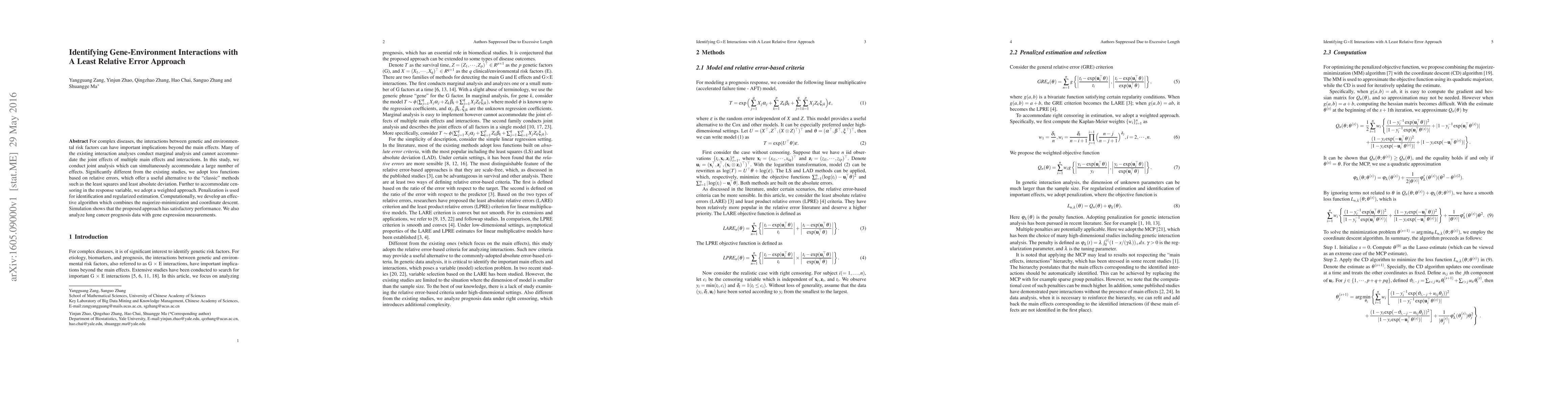 This study proposes a novel joint analysis method to identify gene-environment interactions for complex diseases, using relative error loss functions and a weighted approach to handle censoring. The developed algorithm combines majorize-minimization and coordinate descent, demonstrating satisfactory performance in simulations and applied to lung cancer prognosis data.