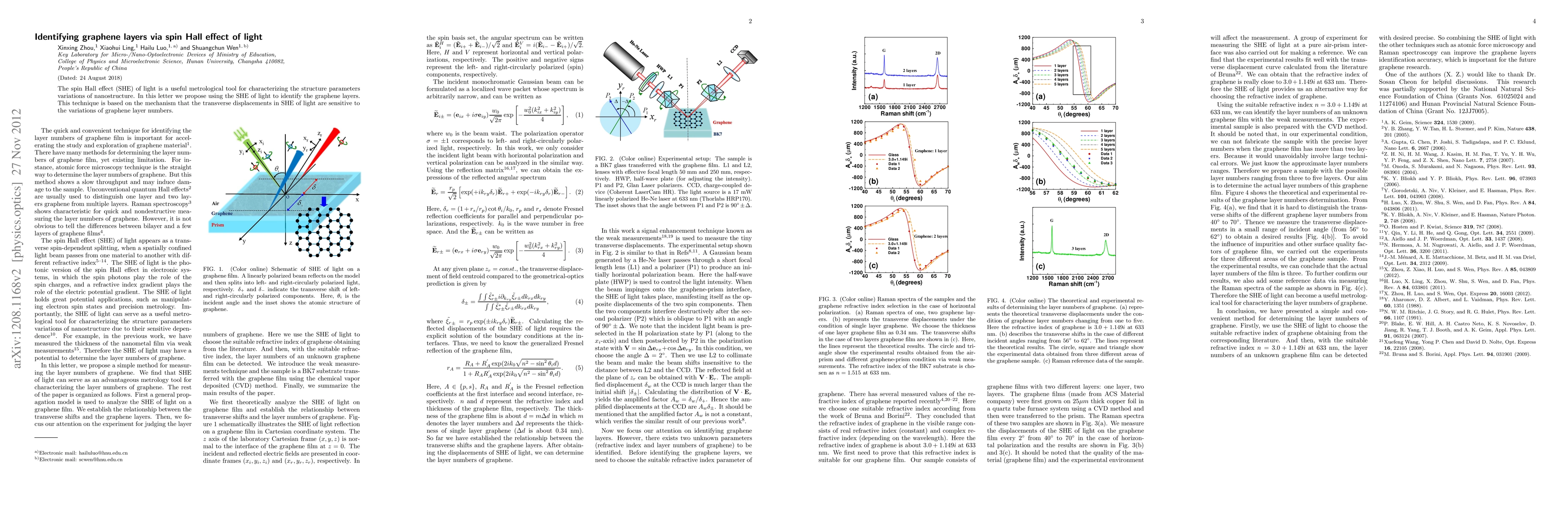This paper proposes using the spin Hall effect of light to identify the number of graphene layers by leveraging the transverse displacements in the effect, which are sensitive to structural variations in graphene. This method offers a metrological tool for characterizing nanostructure parameters.