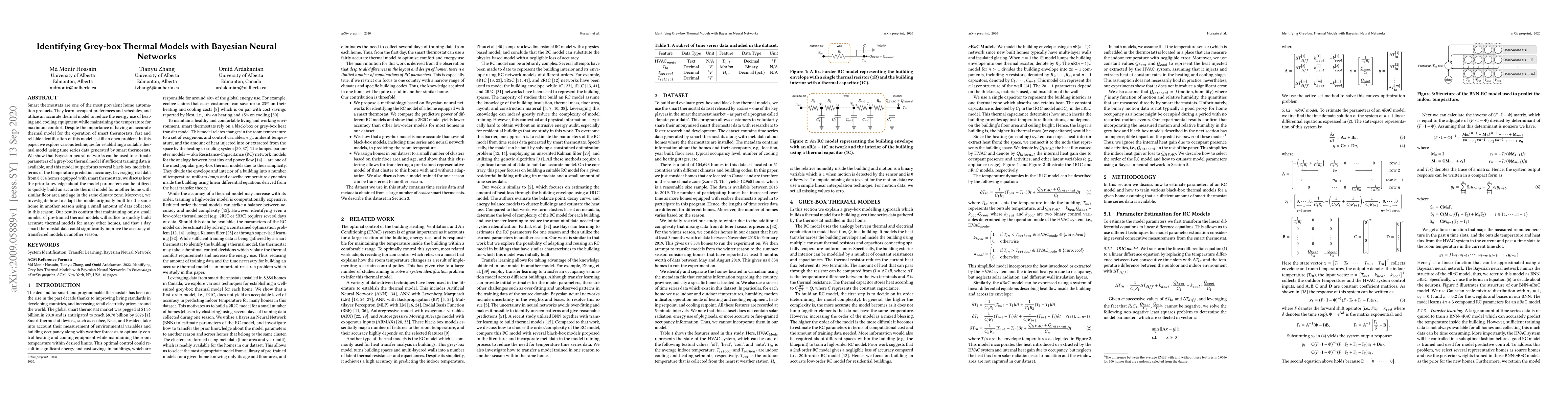 A study uses Bayesian neural networks to identify accurate thermal models for smart thermostats, showing these models can outperform black-box alternatives and allow for quick adaptation to different seasons with minimal data.