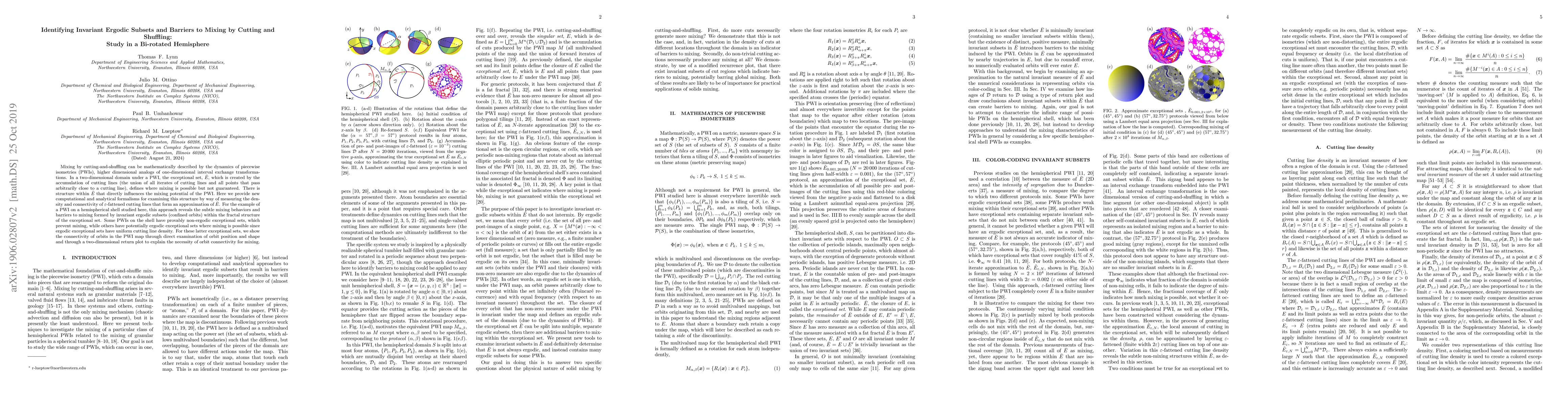 Mixing by cutting-and-shuffling can be mathematically described by the dynamics of piecewise isometries (PWIs), higher dimensional analogs of one-dimensional interval exchange transformations. In a two-dimensional domain under a PWI, the exceptional set, $\bar{E}$, which is created by the accumulation of cutting lines (the union of all iterates of cutting lines and all points that pass arbitrarily close to a cutting line), defines where mixing is possible but not guaranteed. There is structure within $\bar{E}$ that directly influences the mixing potential of the PWI. Here we provide new computational and analytical formalisms for examining this structure by way of measuring the density and connectivity of $\varepsilon$-fattened cutting lines that form an approximation of $\bar{E}$. For the example of a PWI on a hemispherical shell studied here, this approach reveals the subtle mixing behaviors and barriers to mixing formed by invariant ergodic subsets (confined orbits) within the fractal structure of the exceptional set. Some PWIs on the shell have provably non-ergodic exceptional sets, which prevent mixing, while others have potentially ergodic exceptional sets where mixing is possible since ergodic exceptional sets have uniform cutting line density. For these latter exceptional sets, we show the connectivity of orbits in the PWI map through direct examination of orbit position and shape and through a two-dimensional return plot to explain the necessity of orbit connectivity for mixing.