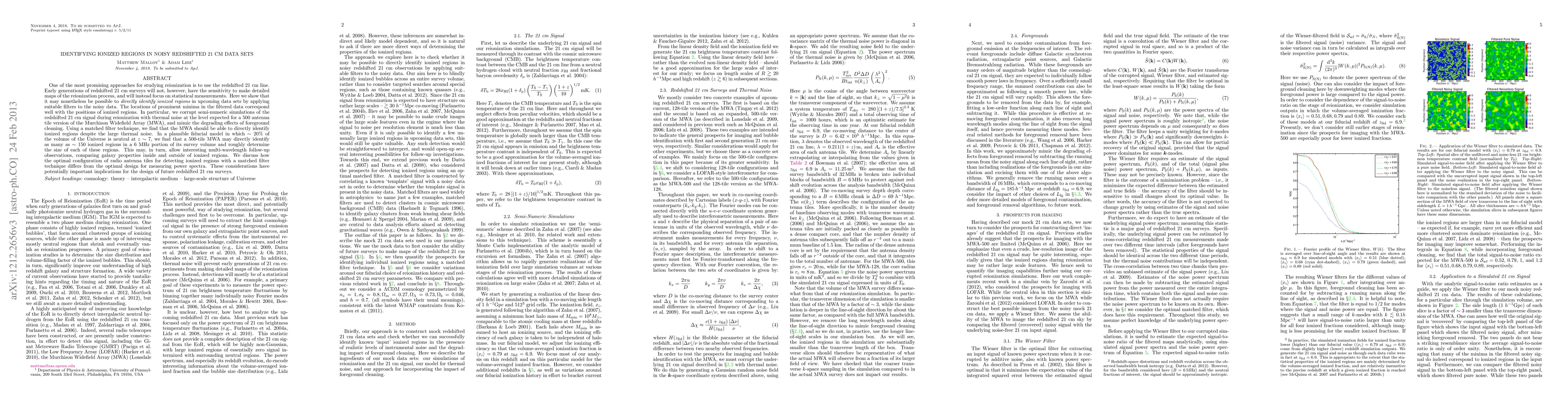 This paper demonstrates that despite noise, the Murchison Widefield Array (MWA) can identify ionized regions in redshifted 21 cm data by applying matched filters. It estimates that the MWA could detect up to 150 ionized regions in a 6 MHz survey volume, aiding multi-wavelength follow-up studies.