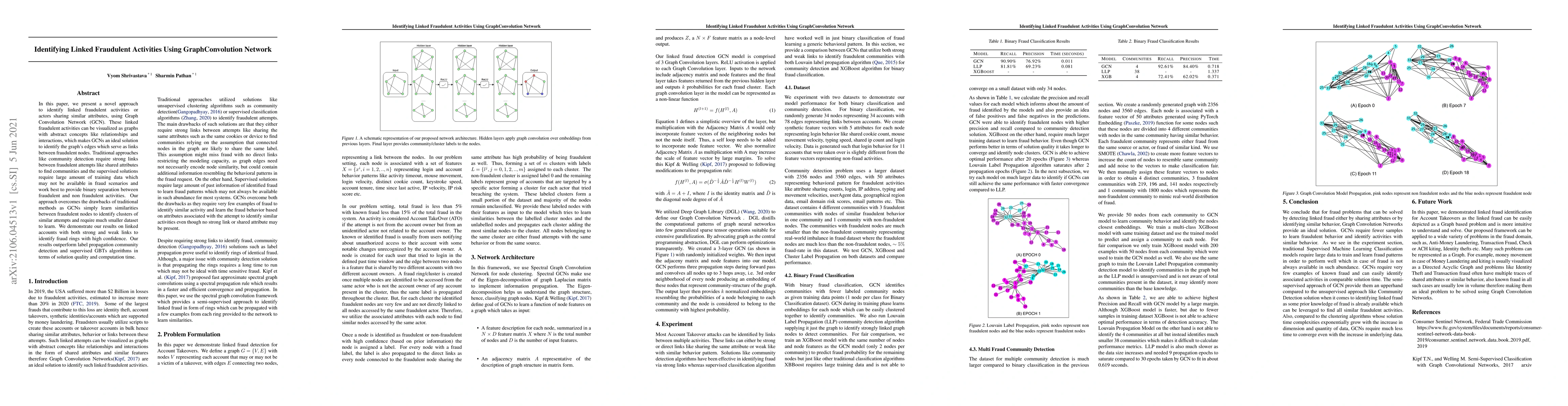 This paper introduces a Graph Convolution Network (GCN) approach to identify linked fraudulent activities by detecting clusters of similar fraudulent attempts, requiring smaller datasets and outperforming traditional methods like community detection and supervised GBTs in both solution quality and computation time.