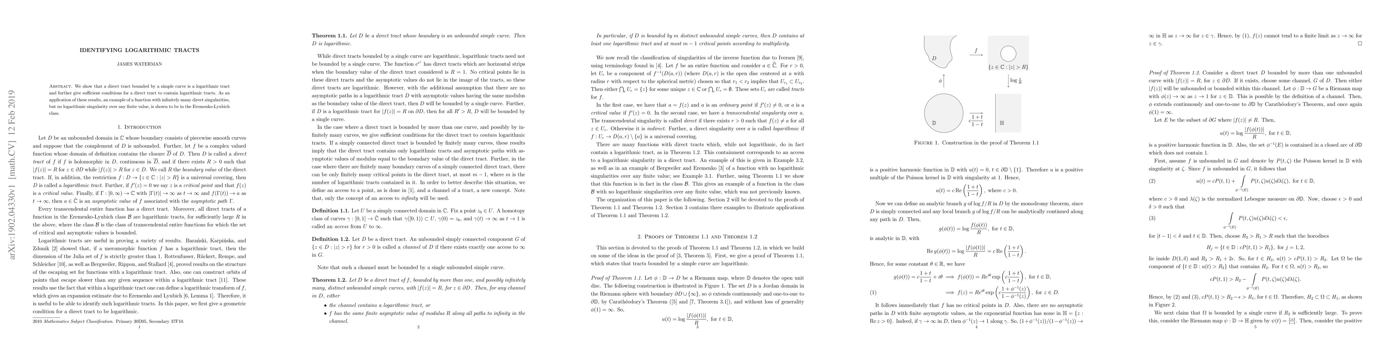 This paper demonstrates that a direct tract enclosed by a simple curve is a logarithmic tract. It also establishes conditions for a direct tract to harbor logarithmic tracts. An application illustrates a function with numerous direct singularities, yet devoid of logarithmic singularities at any finite value, is proven to belong to the Eremenko-Lyubich class.