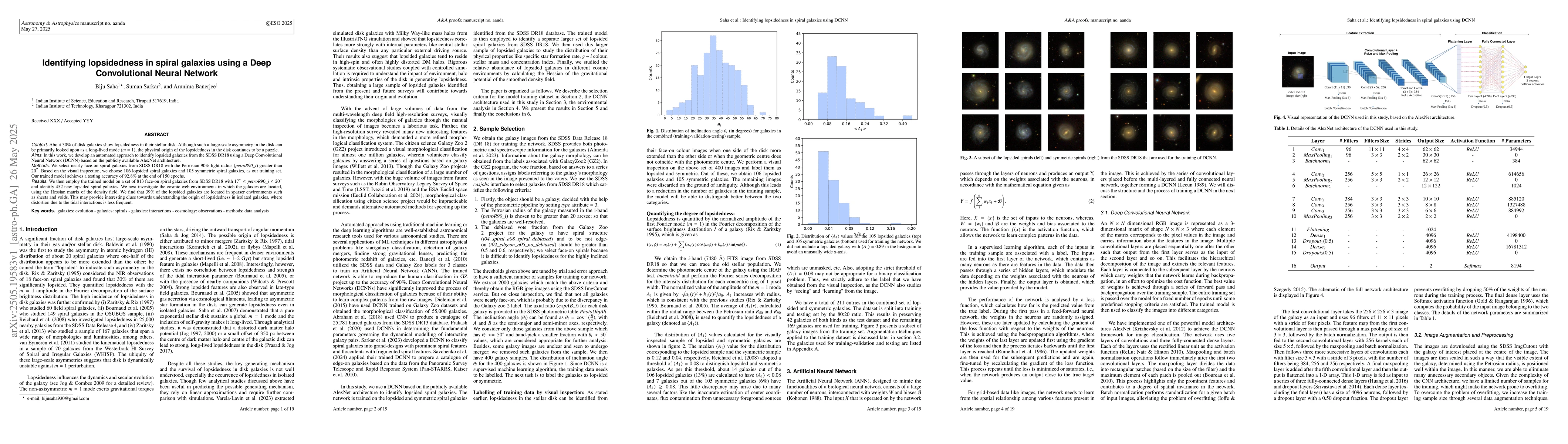 Development and implementation of a Deep Convolutional Neural Network (DCNN) for automated identification of lopsidedness in spiral galaxies.