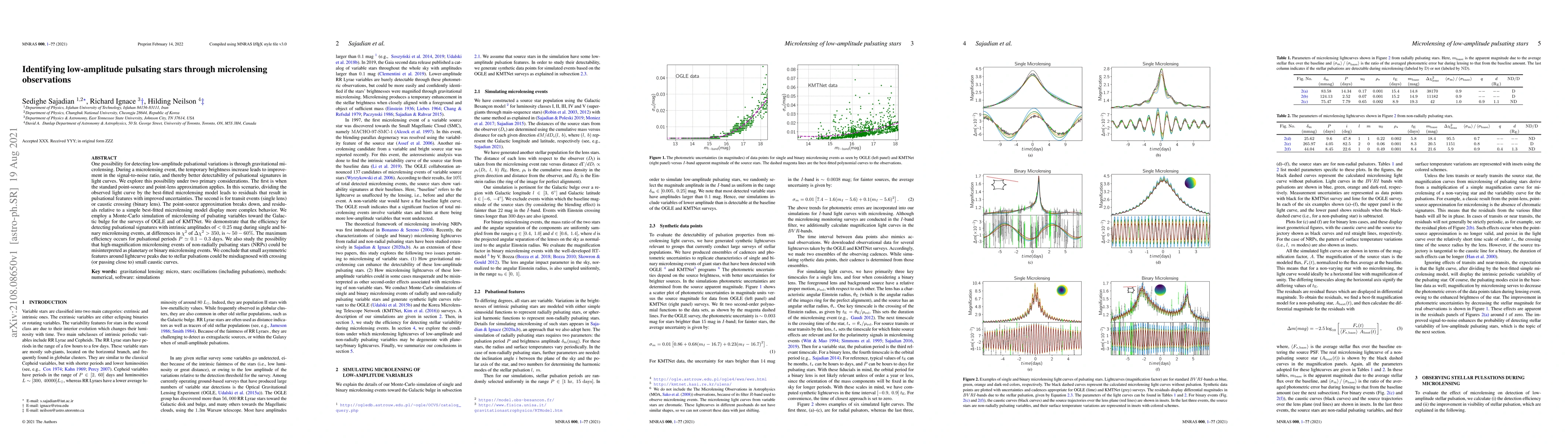This paper investigates the potential of gravitational microlensing to detect low-amplitude pulsating stars by enhancing the signal-to-noise ratio during microlensing events. The study finds that microlensing can detect pulsational signatures with intrinsic amplitudes below 0.25 mag, with an efficiency of 50-60%, particularly for pulsational periods around 0.1-0.3 days. It also warns of the risk of misdiagnosing high-magnification microlensing events from non-radially pulsating stars as planetary or binary events.