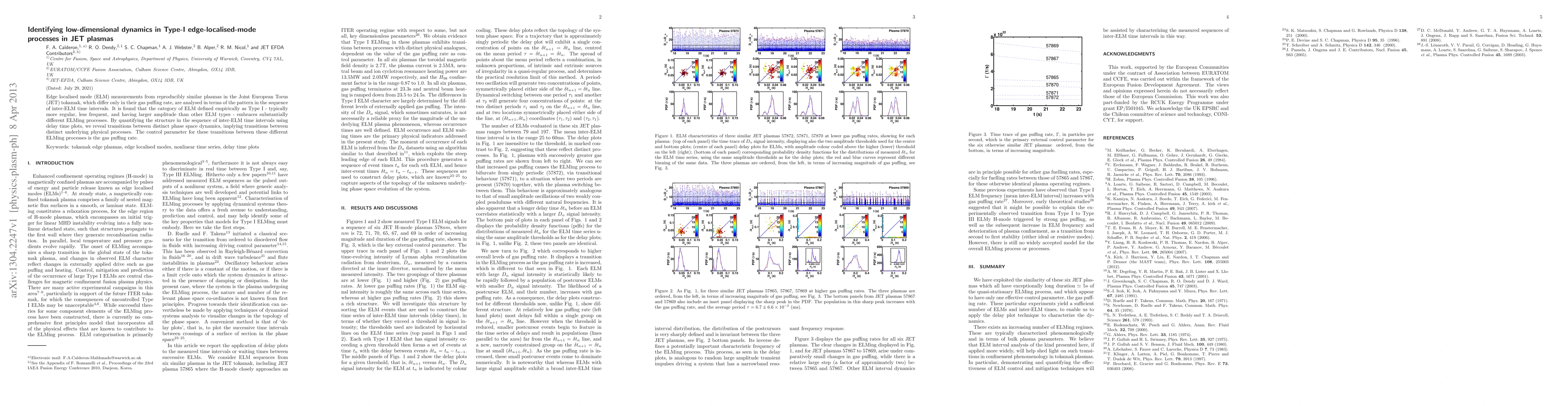 Edge localised mode (ELM) measurements from reproducibly similar plasmas in the Joint European Torus (JET) tokamak, which differ only in their gas puffing rate, are analysed in terms of the pattern in the sequence of inter-ELM time intervals. It is found that the category of ELM defined empirically as Type I - typically more regular, less frequent, and having larger amplitude than other ELM types - embraces substantially different ELMing processes. By quantifying the structure in the sequence of inter-ELM time intervals using delay time plots, we reveal transitions between distinct phase space dynamics, implying transitions between distinct underlying physical processes. The control parameter for these transitions between these different ELMing processes is the gas puffing rate.