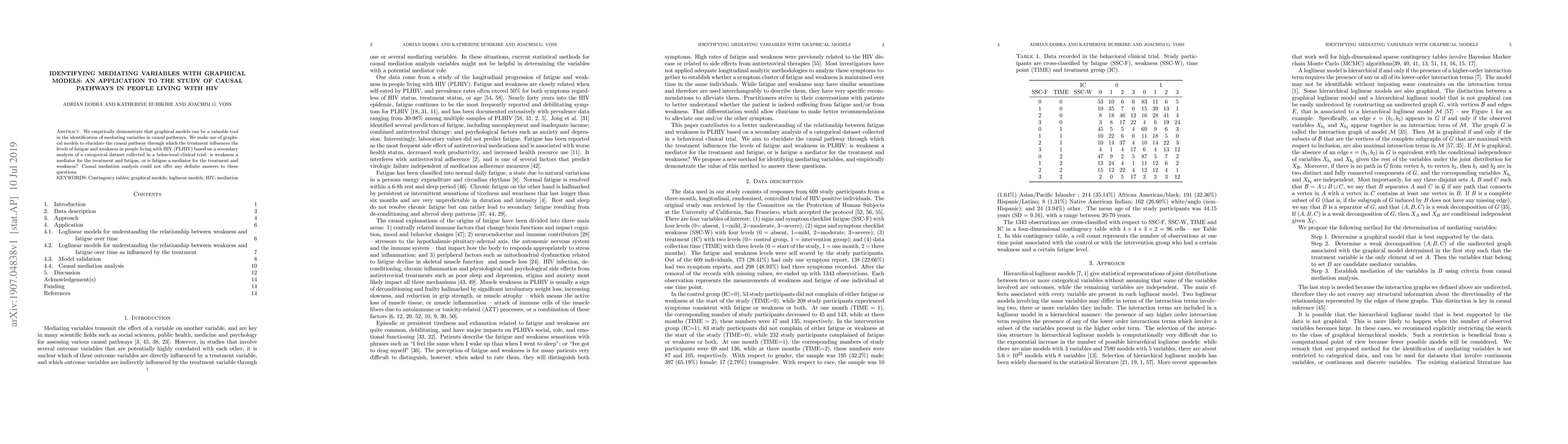 We empirically demonstrate that graphical models can be a valuable tool in the identification of mediating variables in causal pathways. We make use of graphical models to elucidate the causal pathway through which the treatment influences the levels of fatigue and weakness in people living with HIV (PLHIV) based on a secondary analysis of a categorical dataset collected in a behavioral clinical trial: is weakness a mediator for the treatment and fatigue, or is fatigue a mediator for the treatment and weakness? Causal mediation analysis could not offer any definite answers to these questions.\\ KEYWORDS: Contingency tables; graphical models; loglinear models; HIV; mediation