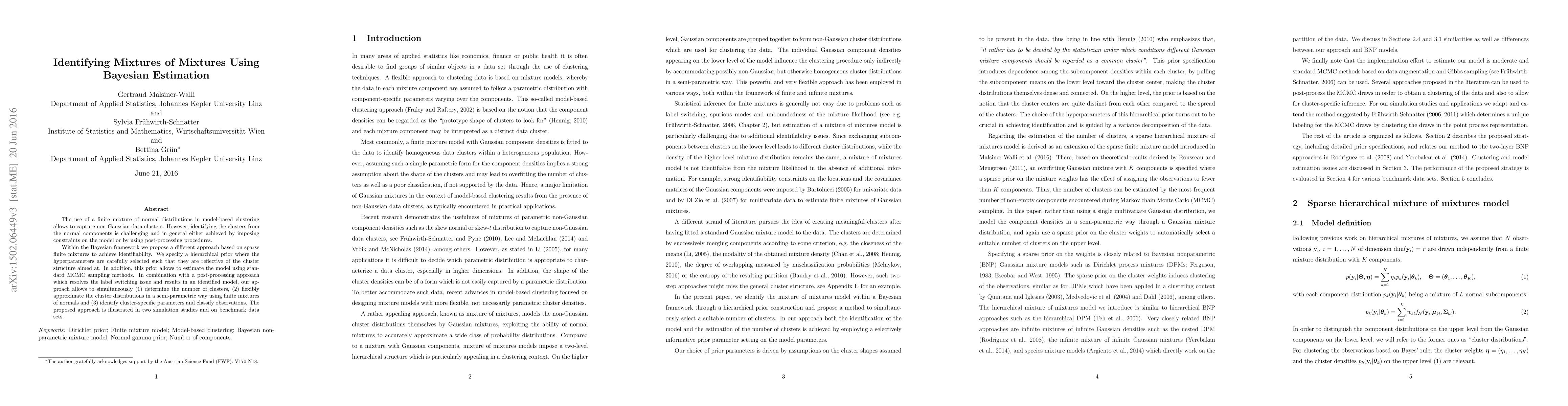 The use of a finite mixture of normal distributions in model-based clustering allows to capture non-Gaussian data clusters. However, identifying the clusters from the normal components is challenging and in general either achieved by imposing constraints on the model or by using post-processing procedures. Within the Bayesian framework we propose a different approach based on sparse finite mixtures to achieve identifiability. We specify a hierarchical prior where the hyperparameters are carefully selected such that they are reflective of the cluster structure aimed at. In addition this prior allows to estimate the model using standard MCMC sampling methods. In combination with a post-processing approach which resolves the label switching issue and results in an identified model, our approach allows to simultaneously (1) determine the number of clusters, (2) flexibly approximate the cluster distributions in a semi-parametric way using finite mixtures of normals and (3) identify cluster-specific parameters and classify observations. The proposed approach is illustrated in two simulation studies and on benchmark data sets.