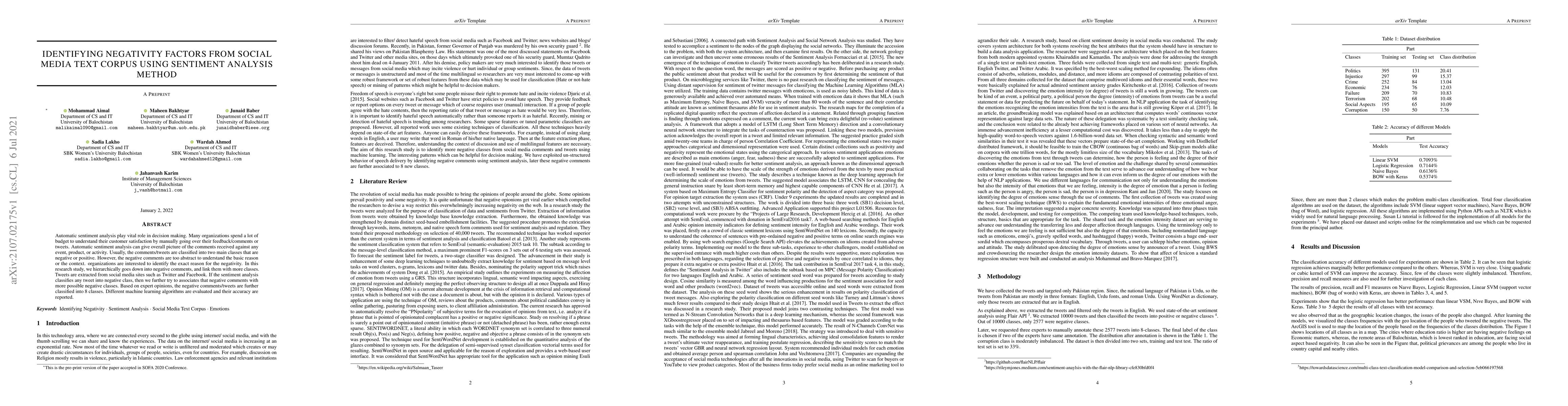 Automatic sentiment analysis play vital role in decision making. Many organizations spend a lot of budget to understand their customer satisfaction by manually going over their feedback/comments or tweets. Automatic sentiment analysis can give overall picture of the comments received against any event, product, or activity. Usually, the comments/tweets are classified into two main classes that are negative or positive. However, the negative comments are too abstract to understand the basic reason or the context. organizations are interested to identify the exact reason for the negativity. In this research study, we hierarchically goes down into negative comments, and link them with more classes. Tweets are extracted from social media sites such as Twitter and Facebook. If the sentiment analysis classifies any tweet into negative class, then we further try to associates that negative comments with more possible negative classes. Based on expert opinions, the negative comments/tweets are further classified into 8 classes. Different machine learning algorithms are evaluated and their accuracy are reported.
