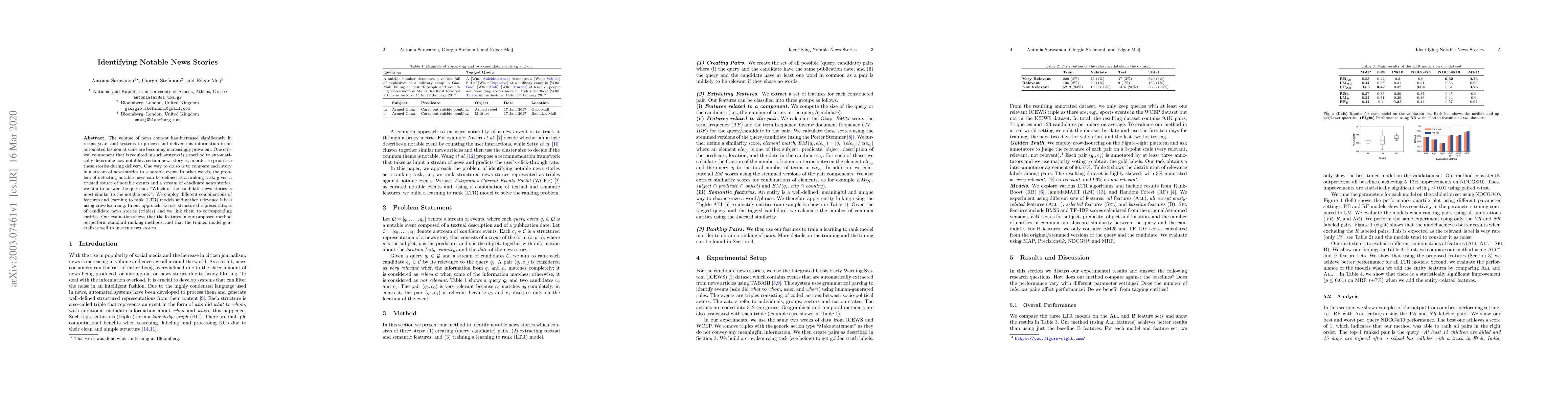 This research develops an automated method to determine the notableness of news stories by comparing them to a trusted source of notable events, employing structured representations and learning to rank models. The proposed approach outperforms standard ranking methods and generalizes well to unseen stories, as demonstrated through evaluation using crowdsourcing-gathered relevance labels.