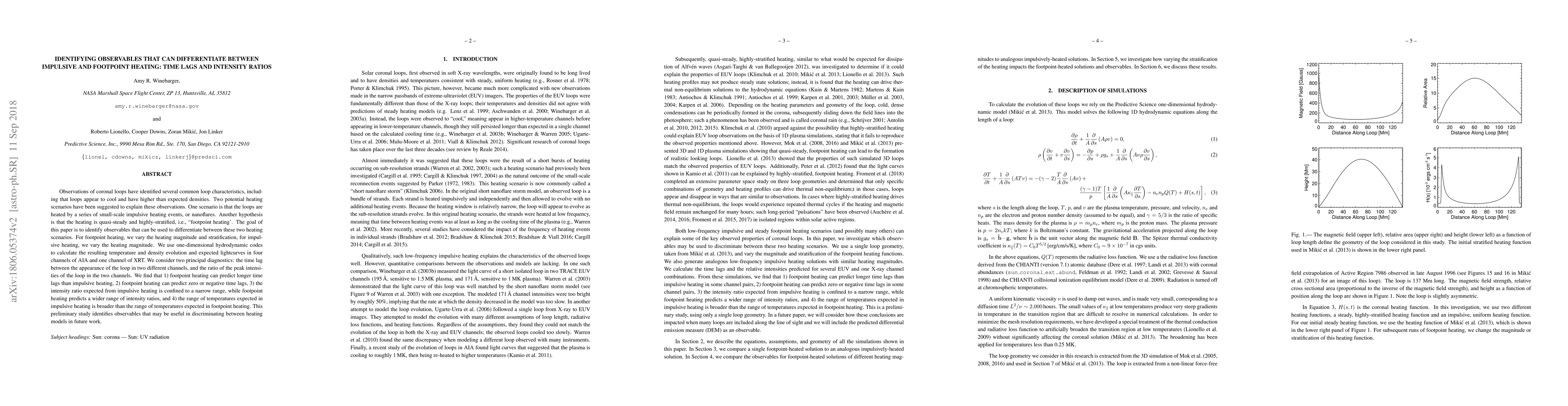 Observations of coronal loops have identified several common loop characteristics, including that loops appear to cool and have higher than expected densities. Two potential heating scenarios have been suggested to explain these observations. One scenario is that the loops are heated by a series of small-scale impulsive heating events, or nanoflares. Another hypothesis is that the heating is quasi-steady and highly-stratified, i.e., ``footpoint heating'. The goal of this paper is to identify observables that can be used to differentiate between these two heating scenarios. For footpoint heating, we vary the heating magnitude and stratification, for impulsive heating, we vary the heating magnitude. We use one-dimensional hydrodynamic codes to calculate the resulting temperature and density evolution and expected lightcurves in four channels of AIA and one channel of XRT. We consider two principal diagnostics: the time lag between the appearance of the loop in two different channels, and the ratio of the peak intensities of the loop in the two channels. We find that 1) footpoint heating can predict longer time lags than impulsive heating, 2) footpoint heating can predict zero or negative time lags, 3) the intensity ratio expected from impulsive heating is confined to a narrow range, while footpoint heating predicts a wider range of intensity ratios, and 4) the range of temperatures expected in impulsive heating is broader than the range of temperatures expected in footpoint heating. This preliminary study identifies observables that may be useful in discriminating between heating models in future work.