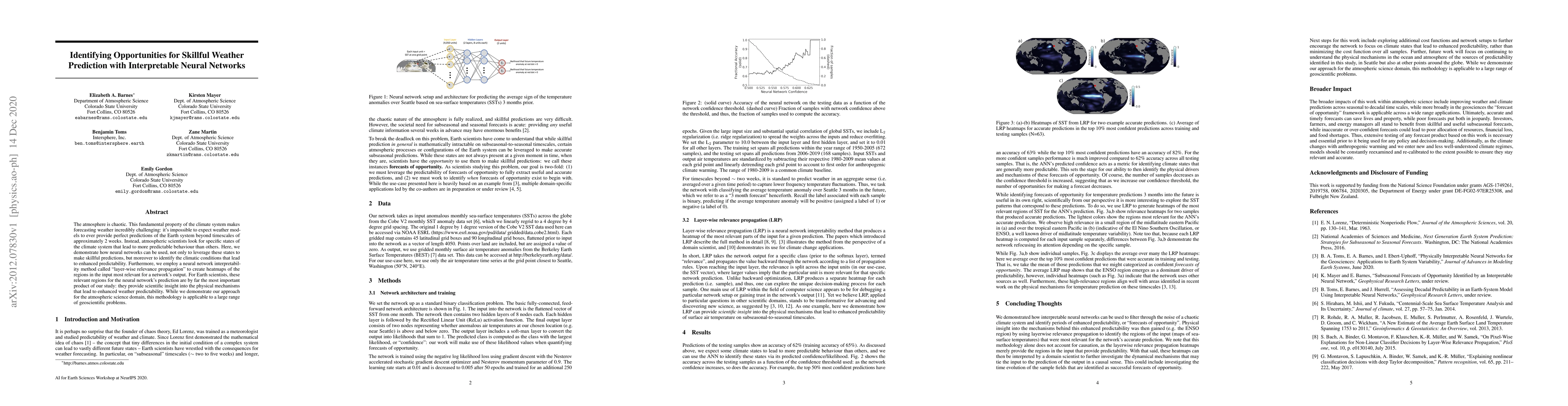 The atmosphere is chaotic. This fundamental property of the climate system makes forecasting weather incredibly challenging: it's impossible to expect weather models to ever provide perfect predictions of the Earth system beyond timescales of approximately 2 weeks. Instead, atmospheric scientists look for specific states of the climate system that lead to more predictable behaviour than others. Here, we demonstrate how neural networks can be used, not only to leverage these states to make skillful predictions, but moreover to identify the climatic conditions that lead to enhanced predictability. Furthermore, we employ a neural network interpretability method called ``layer-wise relevance propagation'' to create heatmaps of the regions in the input most relevant for a network's output. For Earth scientists, these relevant regions for the neural network's prediction are by far the most important product of our study: they provide scientific insight into the physical mechanisms that lead to enhanced weather predictability. While we demonstrate our approach for the atmospheric science domain, this methodology is applicable to a large range of geoscientific problems.