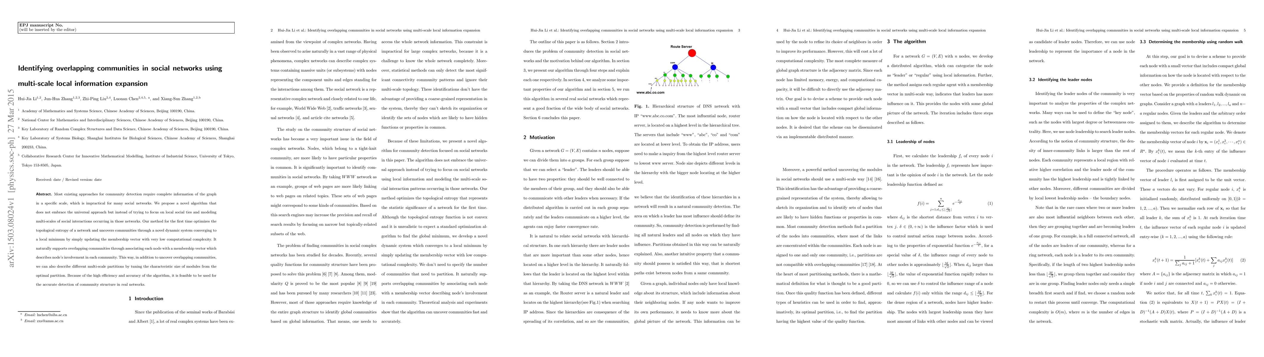 This paper introduces a novel algorithm for identifying overlapping communities in social networks by focusing on local ties and multi-scale interactions, optimizing topological entropy, and dynamically updating membership vectors with low computational complexity, enabling accurate detection of community structures in large networks.