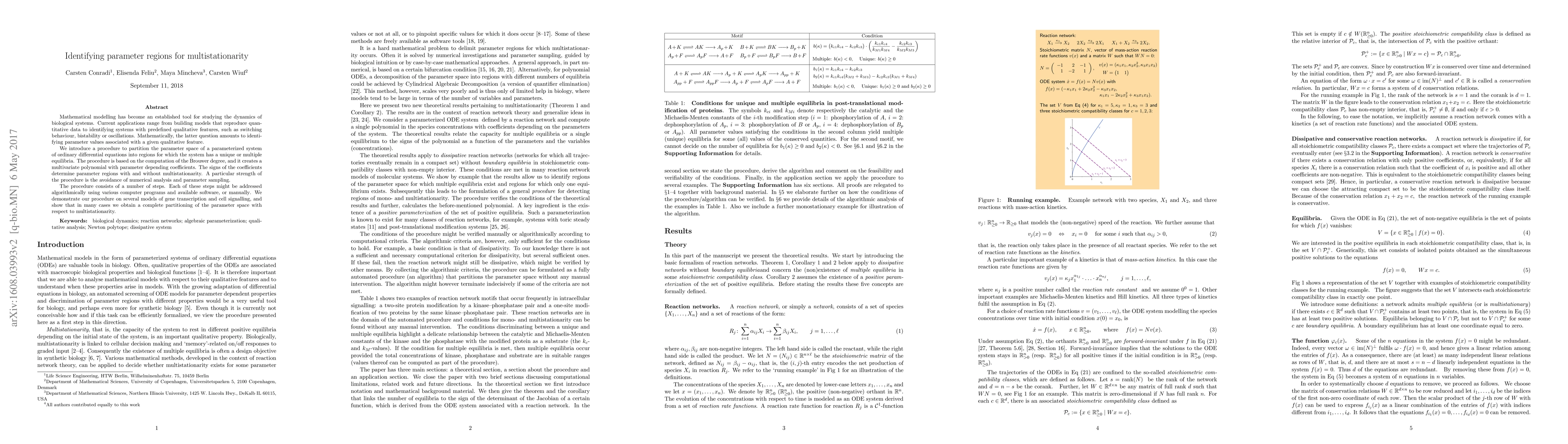 This paper introduces a mathematical procedure to partition the parameter space of ordinary differential equations into regions with unique or multiple equilibria, using the Brouwer degree. The method avoids numerical analysis and parameter sampling, demonstrating its effectiveness on gene transcription and cell signalling models.