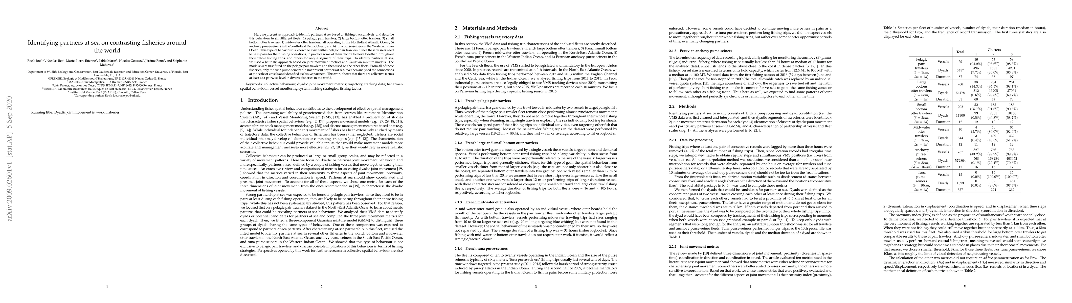 This study uses fishing track analysis to identify partners at sea among six different fishing fleets worldwide, employing joint-movement metrics and Gaussian mixture models. The analysis reveals collective fishing tactics among fleets, except for tuna purse-seiners, indicating pairwise partnerships in diverse fisheries.