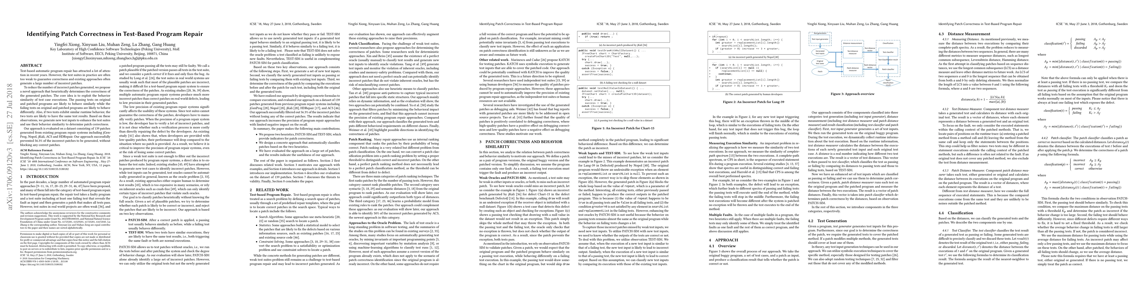This paper proposes a novel method to determine the correctness of patches generated by test-based program repair systems by exploiting behavior similarity between test cases. The approach successfully reduces incorrect patches by 56.3% without affecting the generation of correct patches.