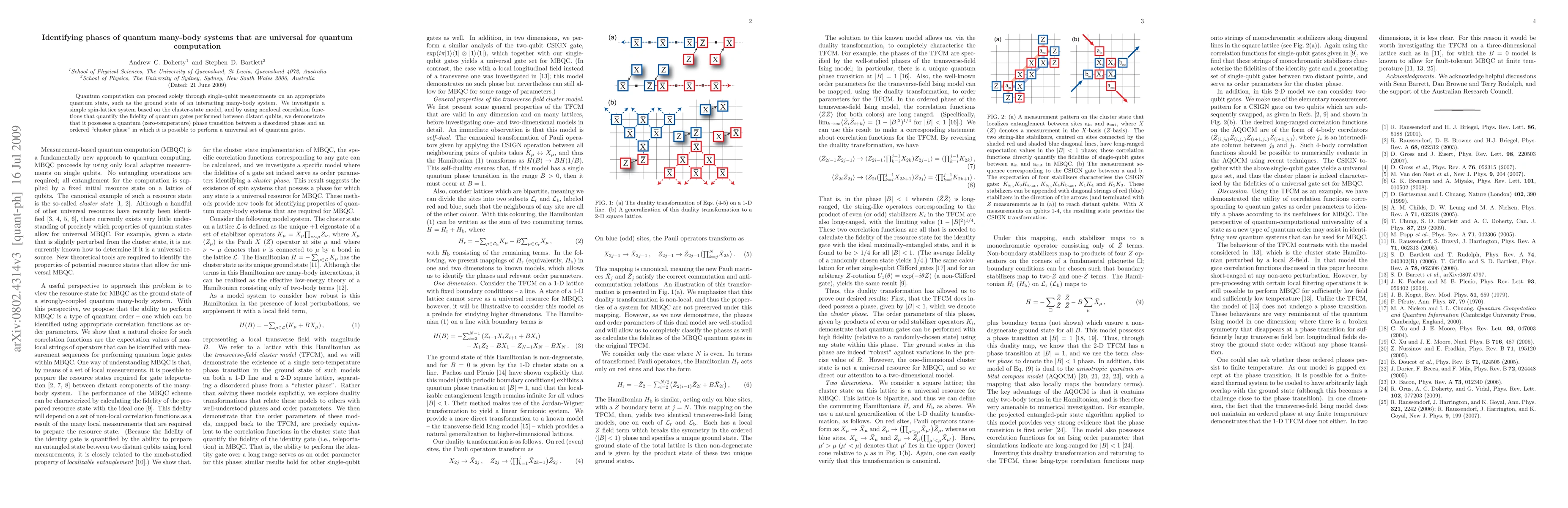 Quantum computation can proceed solely through single-qubit measurements on an appropriate quantum state, such as the ground state of an interacting many-body system. We investigate a simple spin-lattice system based on the cluster-state model, and by using nonlocal correlation functions that quantify the fidelity of quantum gates performed between distant qubits, we demonstrate that it possesses a quantum (zero-temperature) phase transition between a disordered phase and an ordered "cluster phase" in which it is possible to perform a universal set of quantum gates.