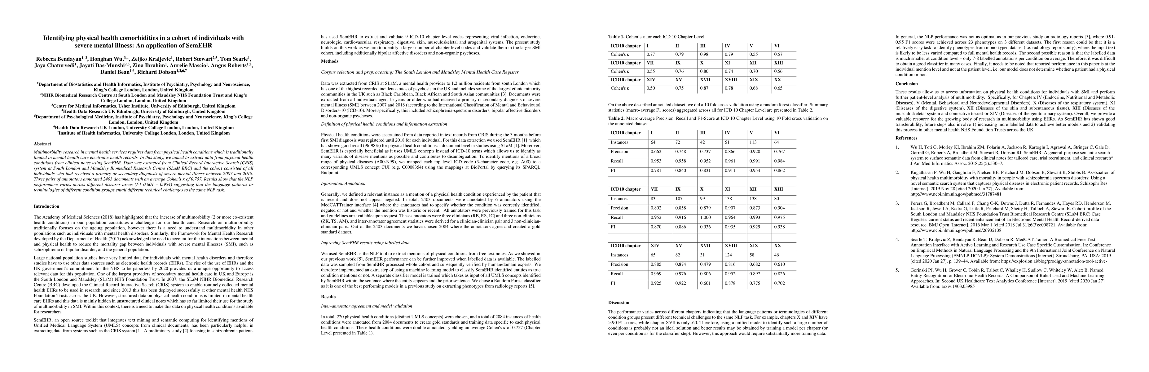 This study utilized SemEHR to extract physical health data from clinical notes for individuals with severe mental illness, revealing varying NLP performance across different disease areas. The cohort from South London and Maudsley BRC showed that language patterns of specific conditions pose distinct challenges for natural language processing.