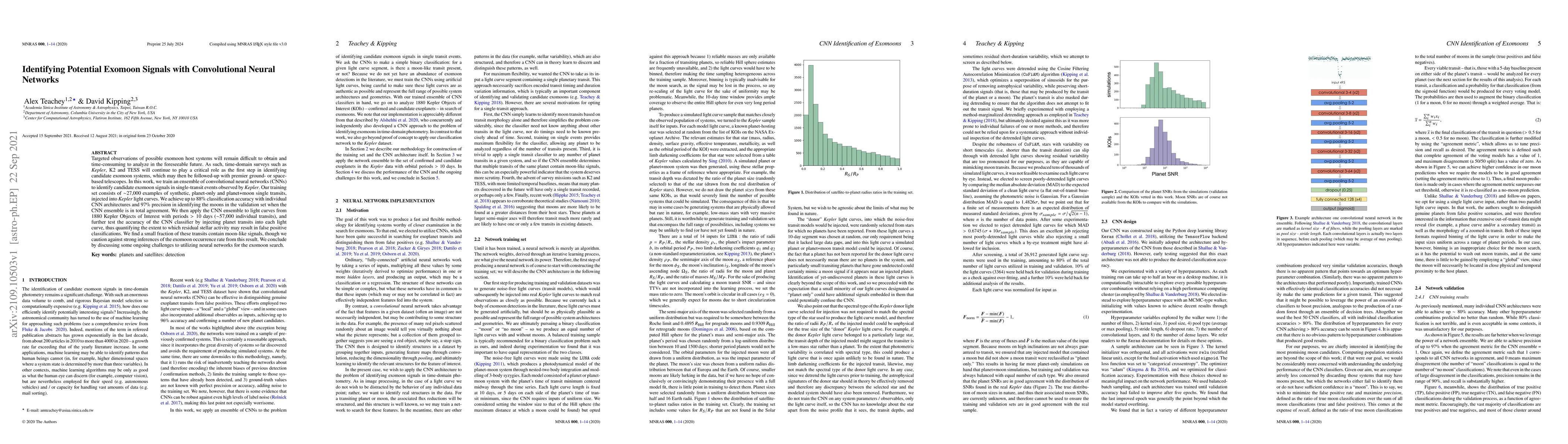 This paper trains convolutional neural networks (CNNs) to identify potential exomoon signals in Kepler light curves, achieving high classification accuracy. The CNN ensemble detects moon-like signals in a small fraction of Kepler Objects of Interest, though cautions against drawing strong conclusions on exomoon occurrence rates.