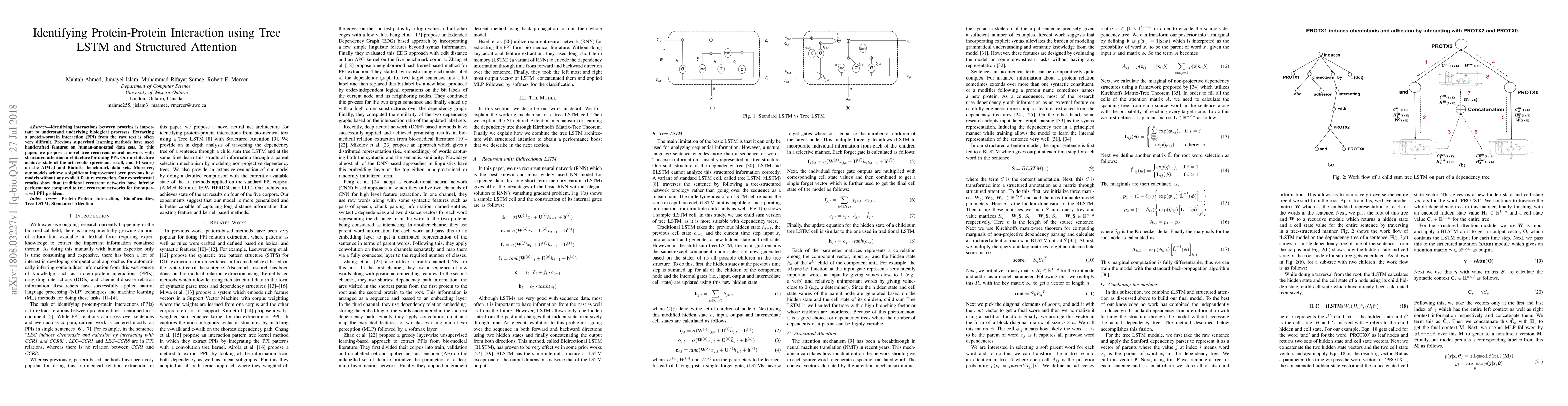 A novel tree recurrent neural network with structured attention architecture achieves state-of-the-art results in identifying protein-protein interactions from raw text without explicit feature extraction, outperforming traditional recurrent networks.