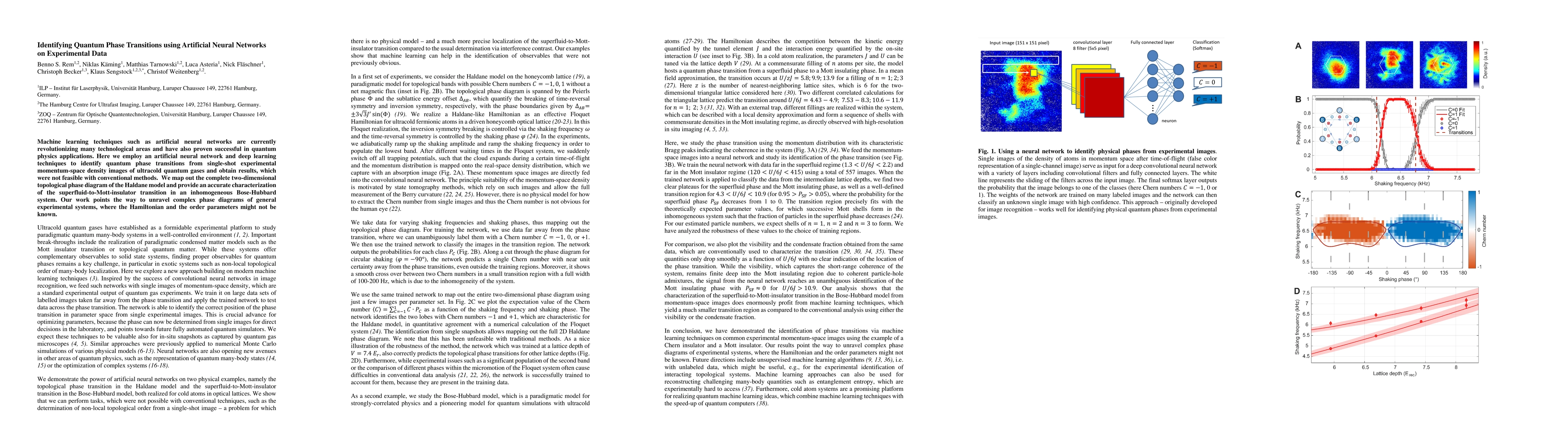 This paper utilizes artificial neural networks and deep learning to identify quantum phase transitions from experimental data of ultracold quantum gases, achieving results beyond conventional methods. It successfully maps out the Haldane model's topological phase diagram and characterizes the superfluid-to-Mott-insulator transition in an inhomogeneous Bose-Hubbard system.