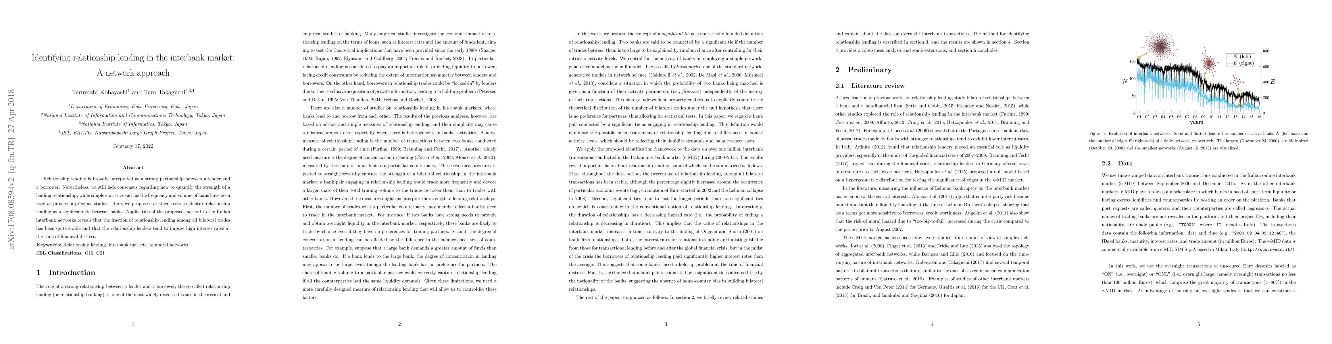 This paper proposes statistical tests to identify relationship lending in the interbank market as significant ties between banks. The study finds that the proportion of relationship lending in the Italian interbank network has remained stable, with relationship lenders often charging higher interest rates during financial distress.