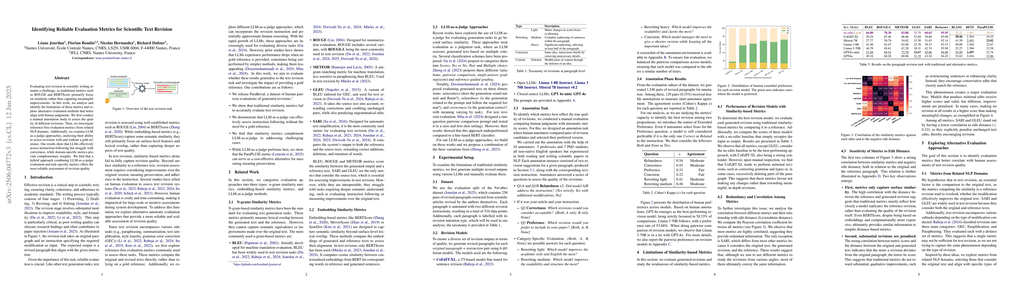 Researchers evaluated traditional metrics for scientific text revision and found they focus on similarity rather than meaningful improvements. A hybrid approach combining machine learning-based evaluation with task-specific metrics provides the most reliable assessment of revision quality.