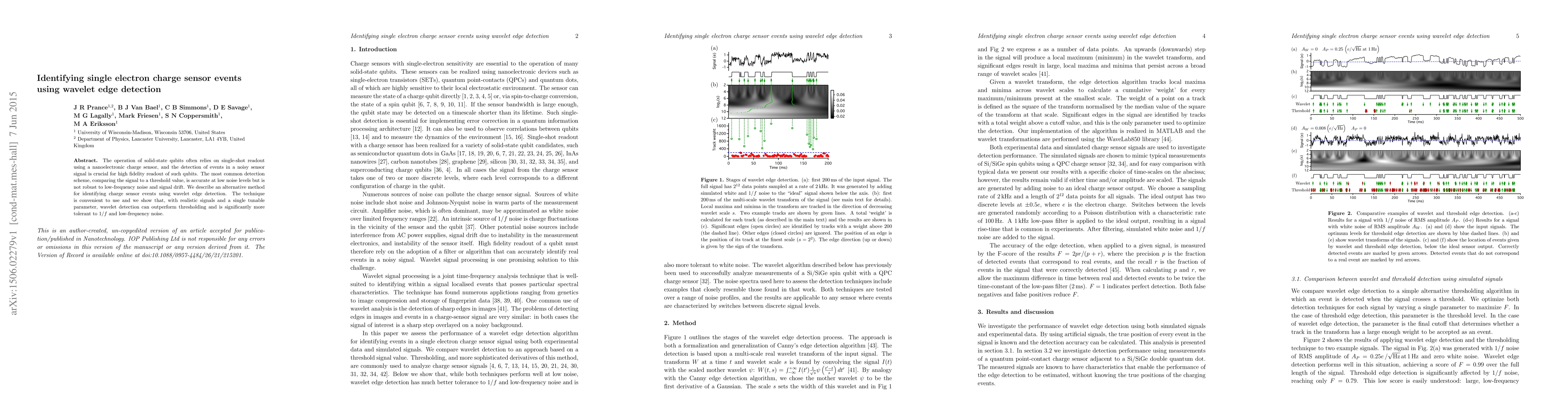 The novelty of this work lies in its application of wavelet edge detection to single-electron charge sensor readout, providing a more reliable and tunable alternative to conventional thresholding techniques for noisy quantum sensor signals.