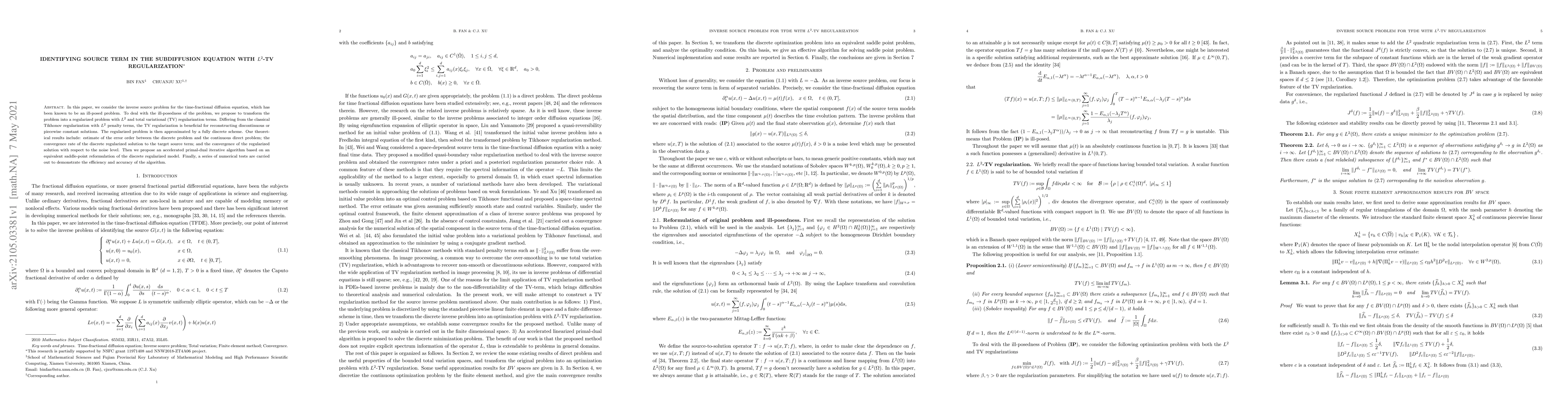 This paper develops an algorithm for reconstructing a source term in a subdiffusion equation using L^2-TV regularization and proposes an accelerated primal-dual iterative method to solve the problem, demonstrating its efficiency and accuracy through numerical tests.