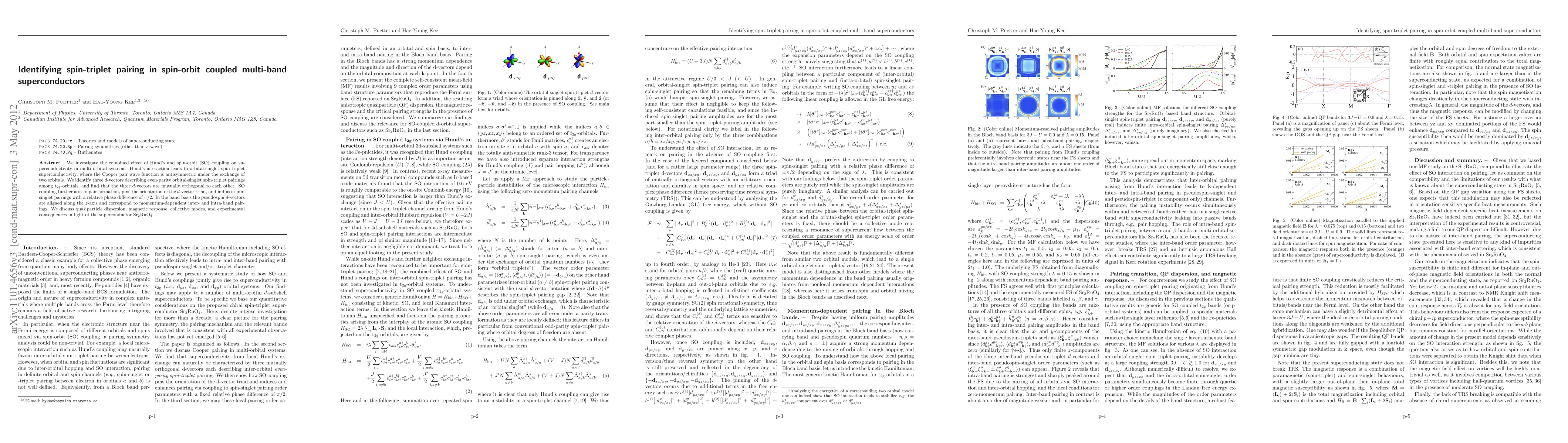 This research identifies spin-triplet pairing in multi-band superconductors influenced by Hund's and spin-orbit coupling, revealing three orthogonal d-vectors for orbital-singlet pairing among t2g-orbitals and discussing their implications for Sr2RuO4.