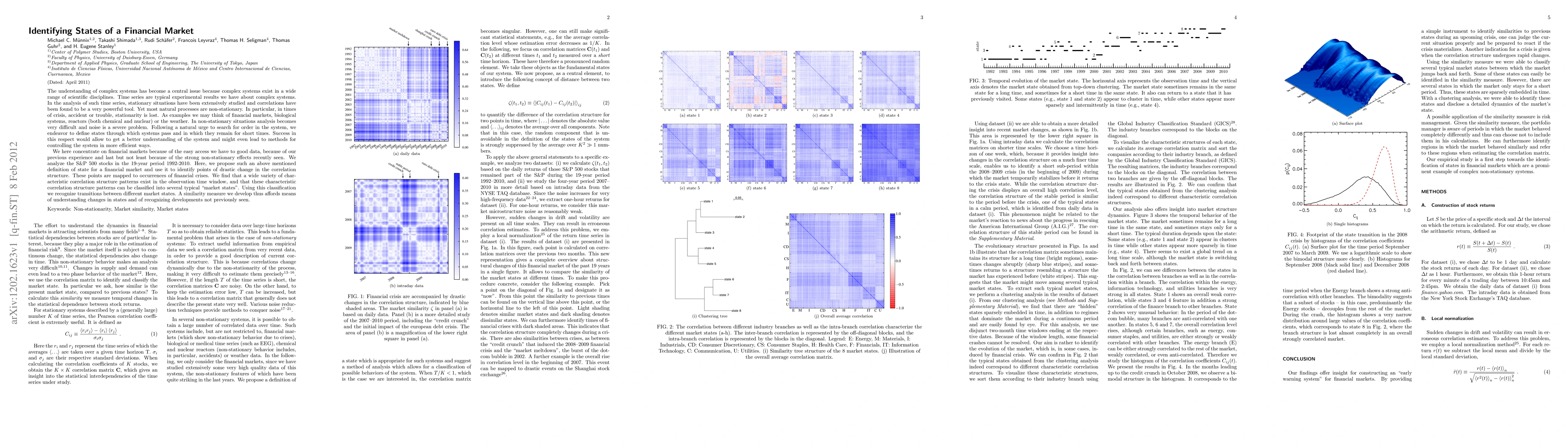 The understanding of complex systems has become a central issue because complex systems exist in a wide range of scientific disciplines. Time series are typical experimental results we have about complex systems. In the analysis of such time series, stationary situations have been extensively studied and correlations have been found to be a very powerful tool. Yet most natural processes are non-stationary. In particular, in times of crisis, accident or trouble, stationarity is lost. As examples we may think of financial markets, biological systems, reactors or the weather. In non-stationary situations analysis becomes very difficult and noise is a severe problem. Following a natural urge to search for order in the system, we endeavor to define states through which systems pass and in which they remain for short times. Success in this respect would allow to get a better understanding of the system and might even lead to methods for controlling the system in more efficient ways. We here concentrate on financial markets because of the easy access we have to good data and because of the strong non-stationary effects recently seen. We analyze the S&P 500 stocks in the 19-year period 1992-2010. Here, we propose such an above mentioned definition of state for a financial market and use it to identify points of drastic change in the correlation structure. These points are mapped to occurrences of financial crises. We find that a wide variety of characteristic correlation structure patterns exist in the observation time window, and that these characteristic correlation structure patterns can be classified into several typical "market states". Using this classification we recognize transitions between different market states. A similarity measure we develop thus affords means of understanding changes in states and of recognizing developments not previously seen.