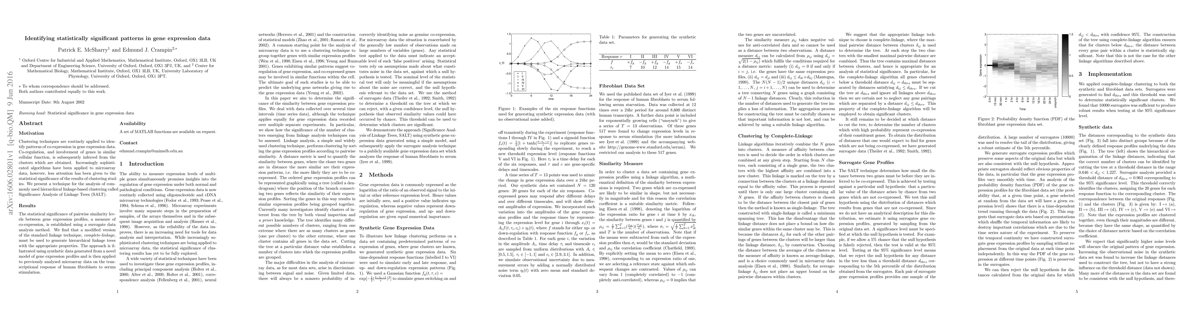 This paper introduces a technique called Significance Analysis of Linkage Trees (SALT) to statistically validate patterns identified in gene expression data through hierarchical clustering. The study finds that complete-linkage clustering is necessary for appropriate statistical significance and applies the method to both synthetic and real microarray data.