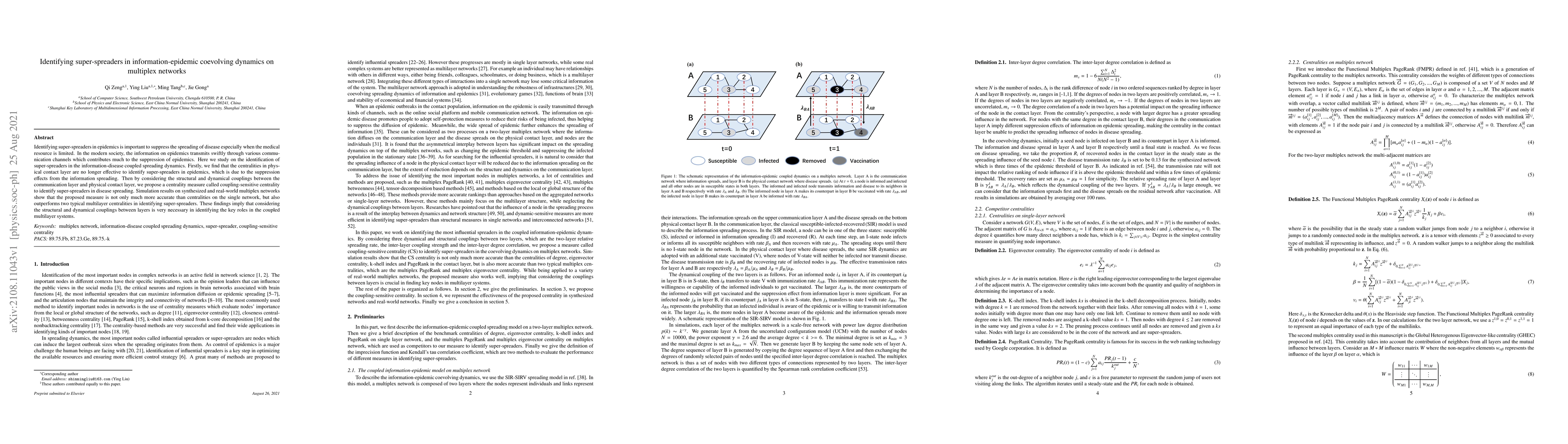 This paper proposes a new centrality measure called coupling-sensitive centrality to identify super-spreaders in information-disease coupled spreading on multiplex networks. Traditional centralities in physical contact layers are ineffective due to information transmission suppression; the new measure outperforms existing methods in both synthesized and real-world datasets.