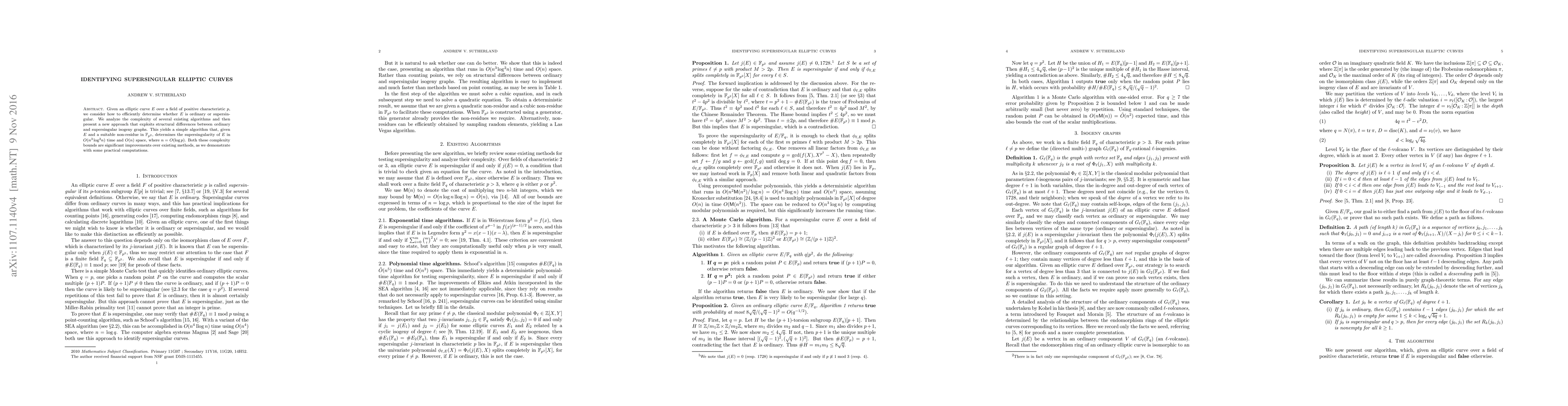 Researchers developed an efficient algorithm to determine whether an elliptic curve is supersingular, improving previous methods' complexity bounds by a factor of 3 in time and 1000 in space.