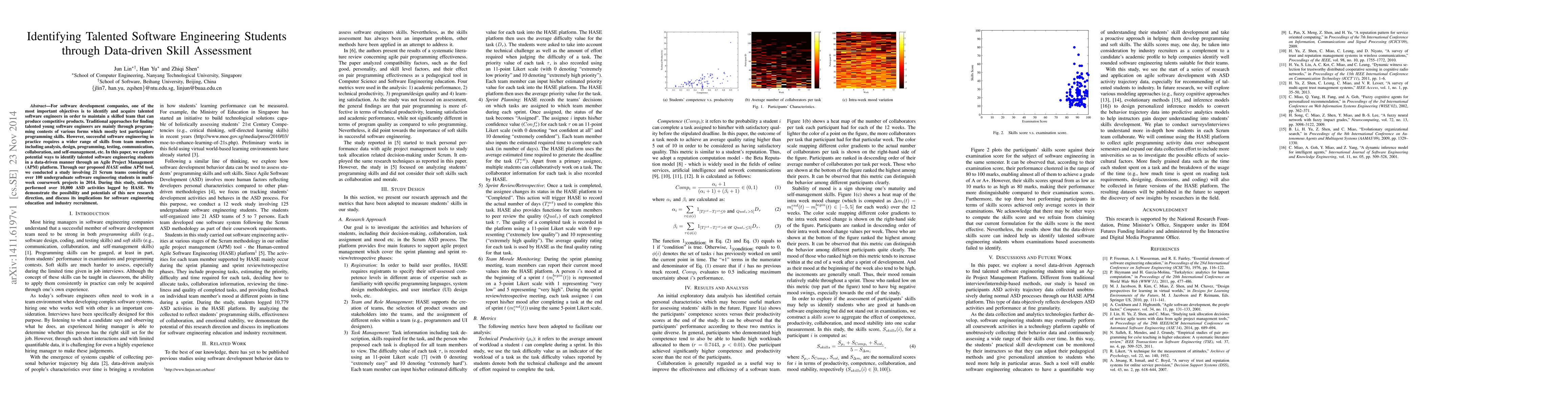 For software development companies, one of the most important objectives is to identify and acquire talented software engineers in order to maintain a skilled team that can produce competitive products. Traditional approaches for finding talented young software engineers are mainly through programming contests of various forms which mostly test participants' programming skills. However, successful software engineering in practice requires a wider range of skills from team members including analysis, design, programming, testing, communication, collaboration, and self-management, etc. In this paper, we explore potential ways to identify talented software engineering students in a data-driven manner through an Agile Project Management (APM) platform. Through our proposed HASE online APM tool, we conducted a study involving 21 Scrum teams consisting of over 100 undergraduate software engineering students in multi-week coursework projects in 2014. During this study, students performed over 10,000 ASD activities logged by HASE. We demonstrate the possibility and potentials of this new research direction, and discuss its implications for software engineering education and industry recruitment.