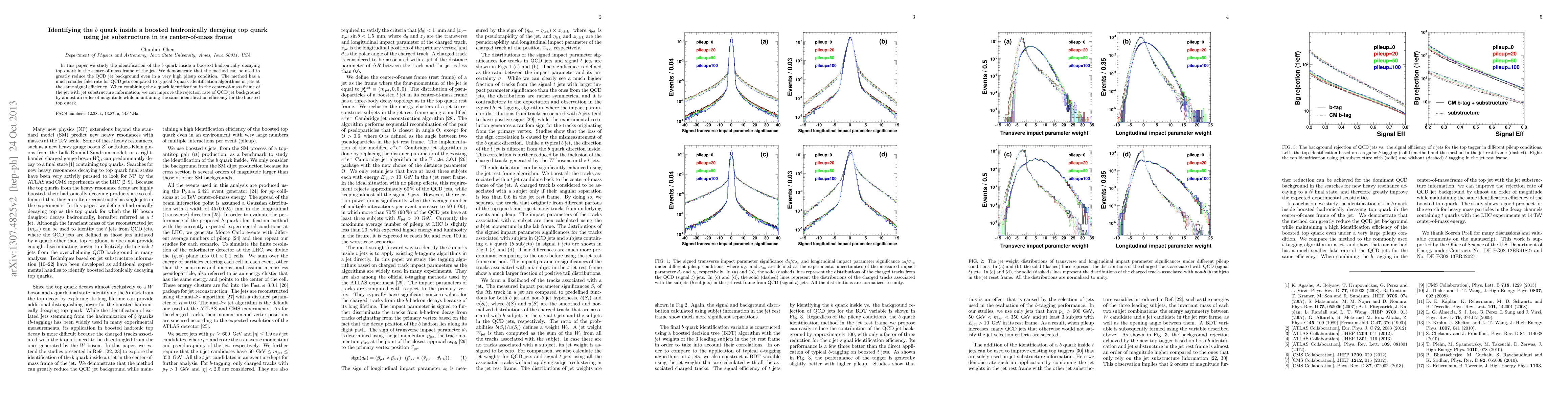 This paper presents a novel method for identifying the b quark within a boosted hadronically decaying top quark using jet substructure in the center-of-mass frame, significantly reducing QCD jet background even in high pileup conditions. The method achieves an order of magnitude improvement in rejecting QCD jet background while maintaining high identification efficiency for the boosted top quark.